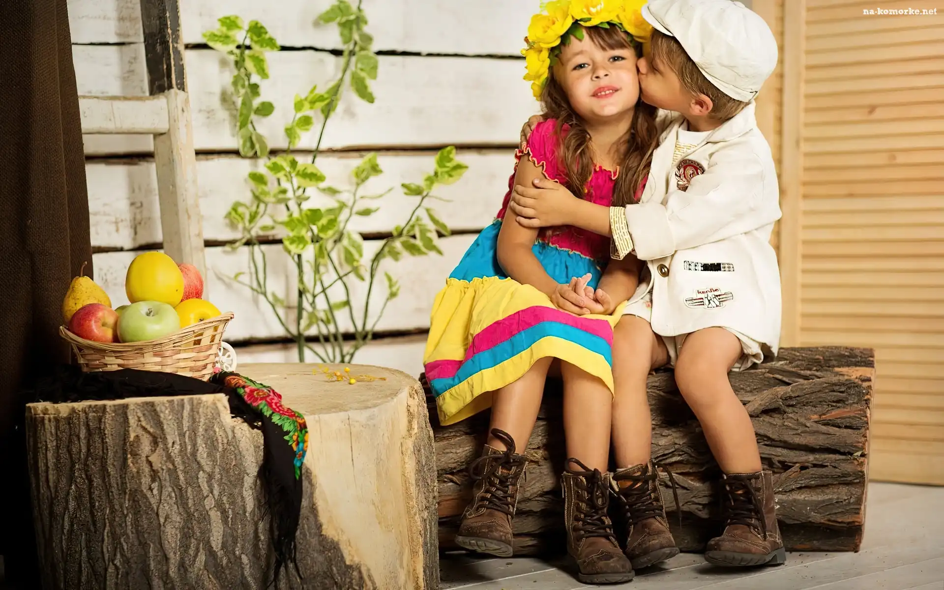 Owoce, Dziewczynka, Dzieci, Przyjaźń, Chłopiec, Pocałunek na Komórkę