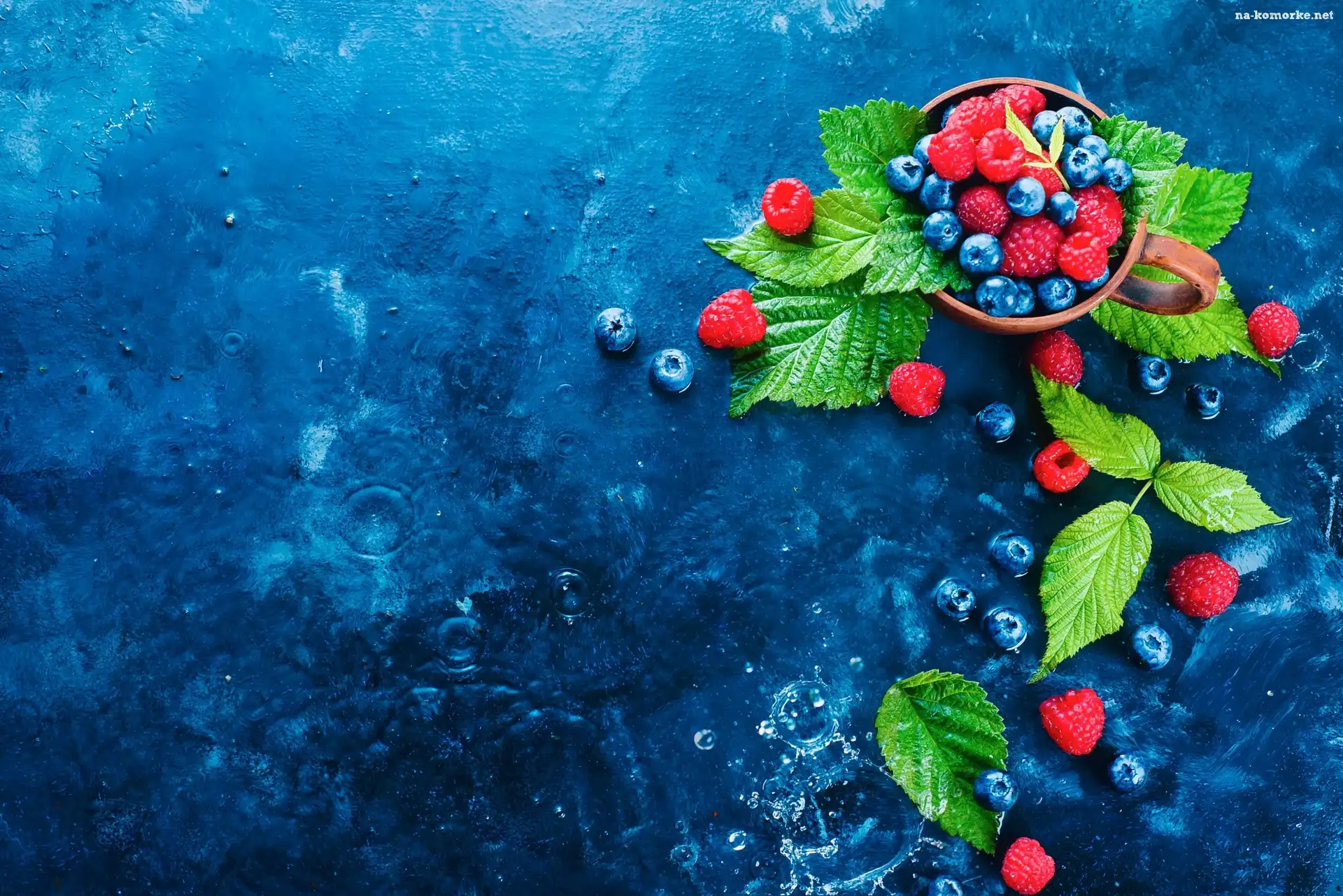 Owoce, Jagody, Maliny, Listki, Miseczka na Komórkę