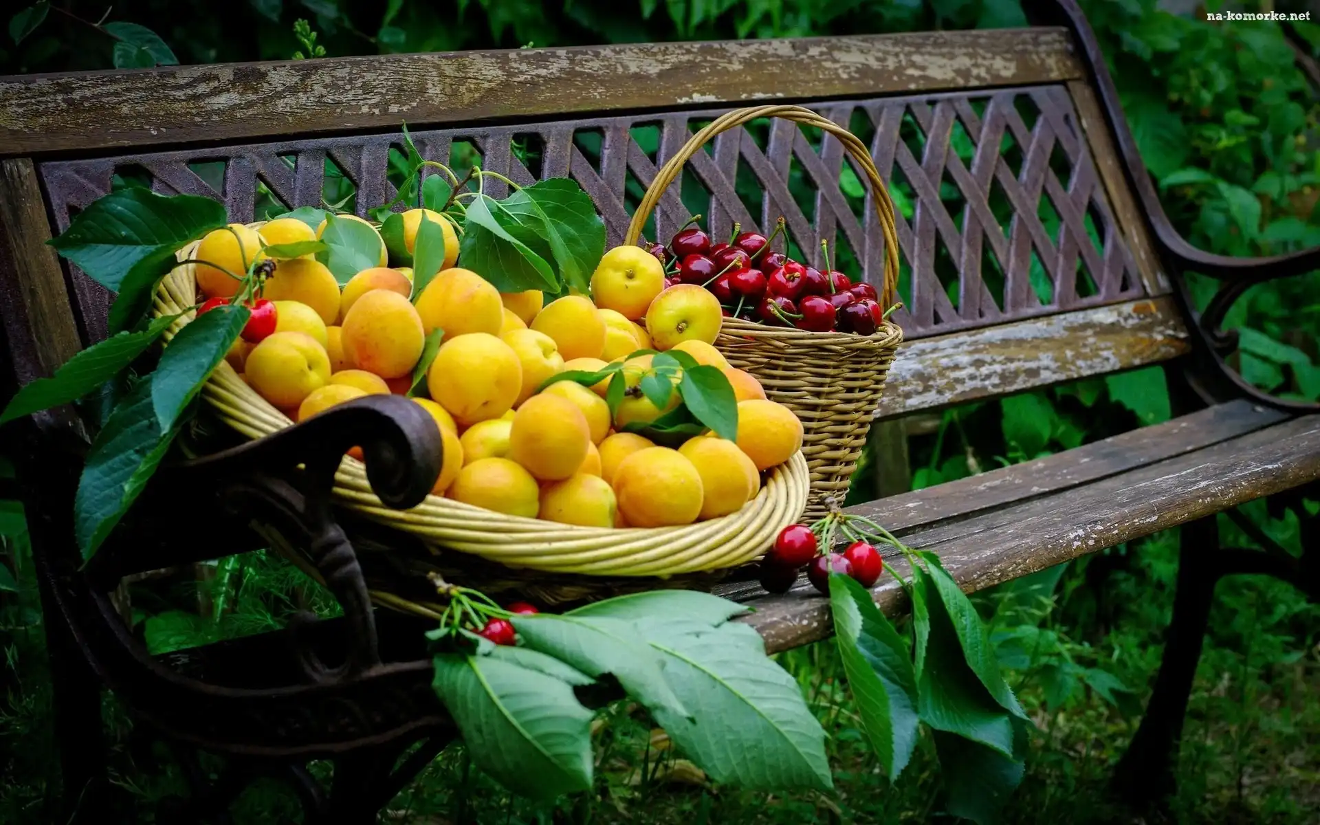 Ławka, Ogród, Owoce, Kosze na Komórkę