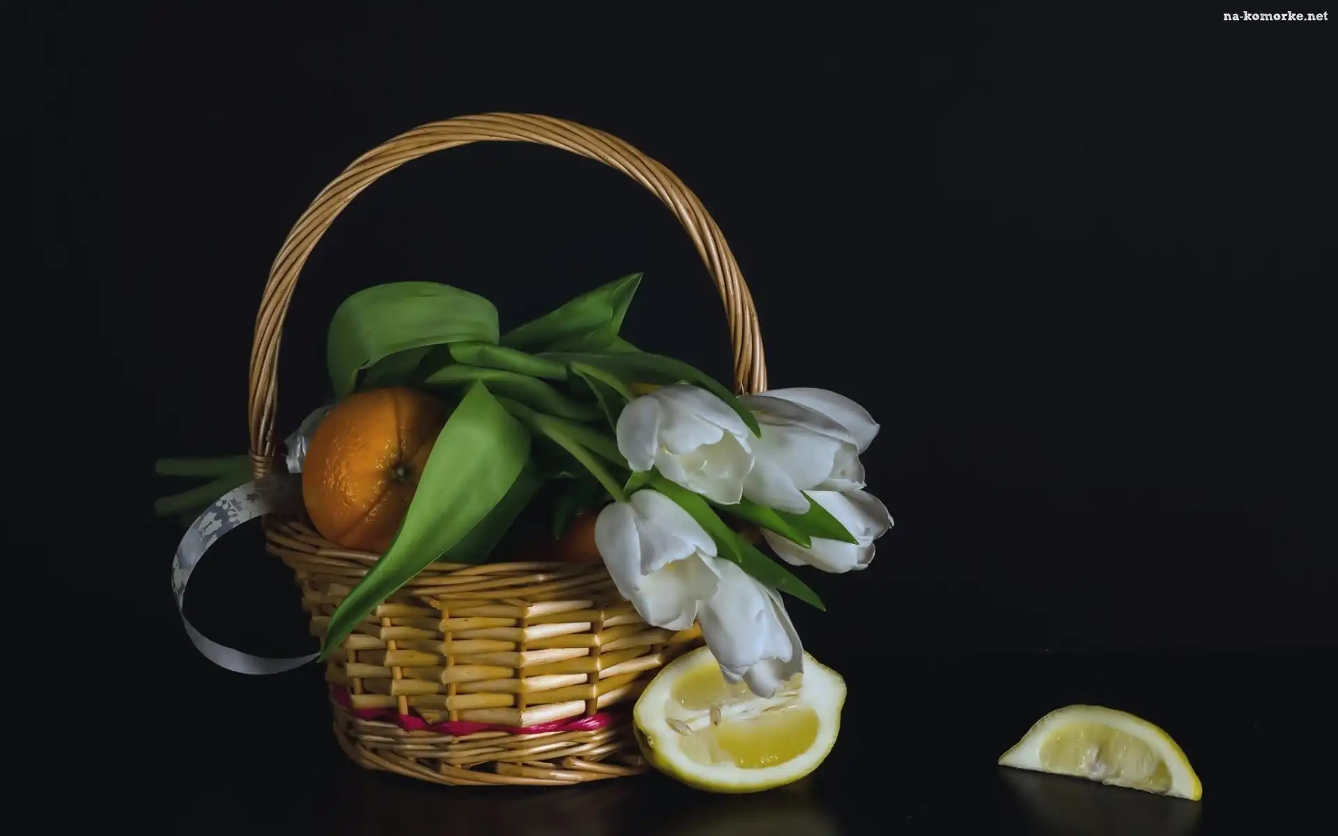 Owoce, Bukiet, Białych, Tulipanów, Koszyk na Komórkę