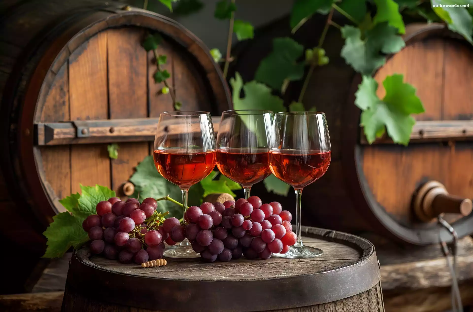 Kieliszki, Owoce, Winogrona, Wino, Beczki na Komórkę