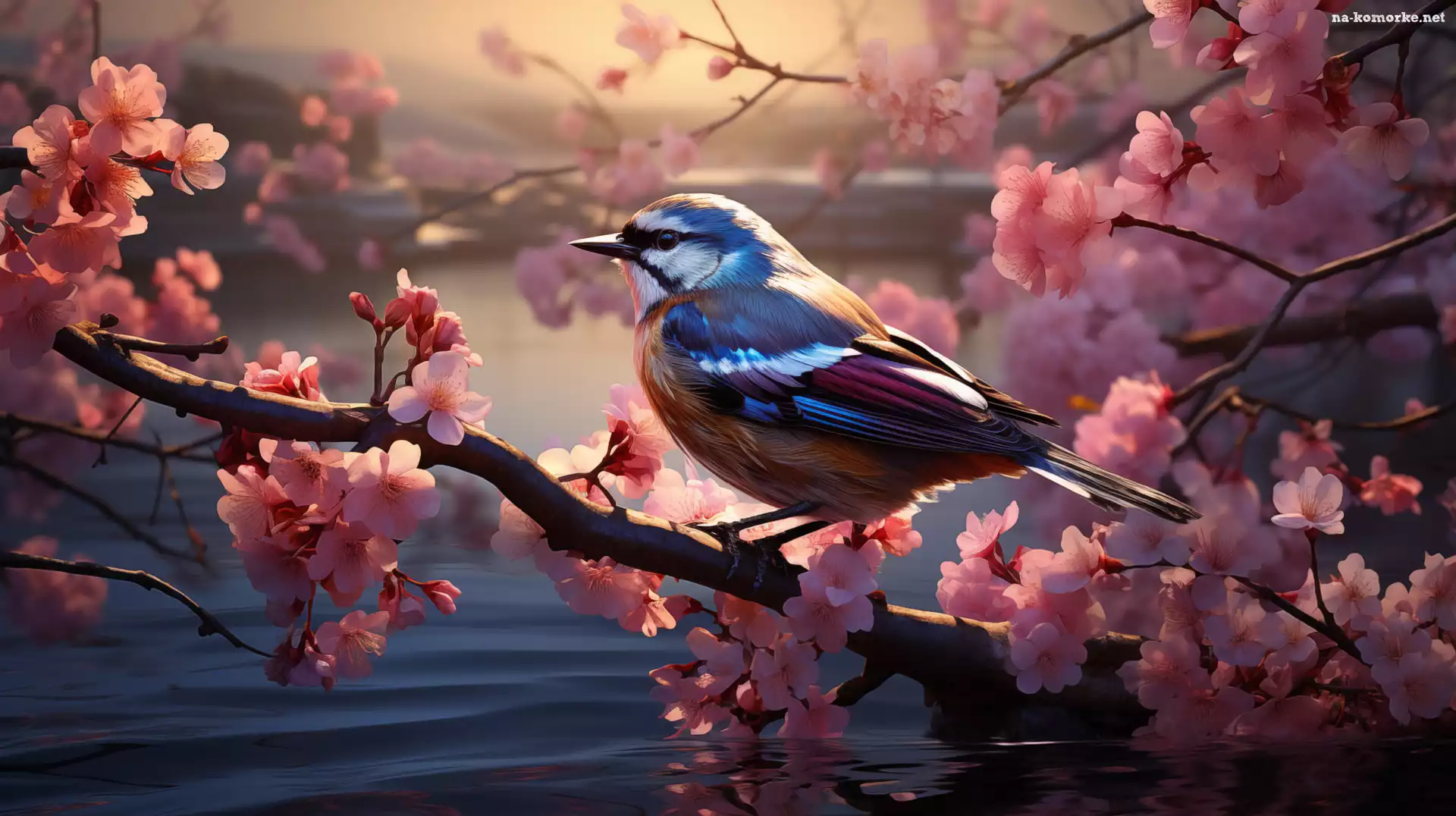 Ptak, Gałęzie, Drzewo owocowe, Ukwiecone, Woda na Komórkę