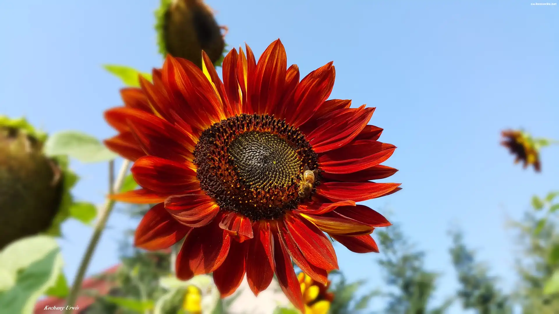 Słonecznik, Ozdobny, Pszczoła na Komórkę