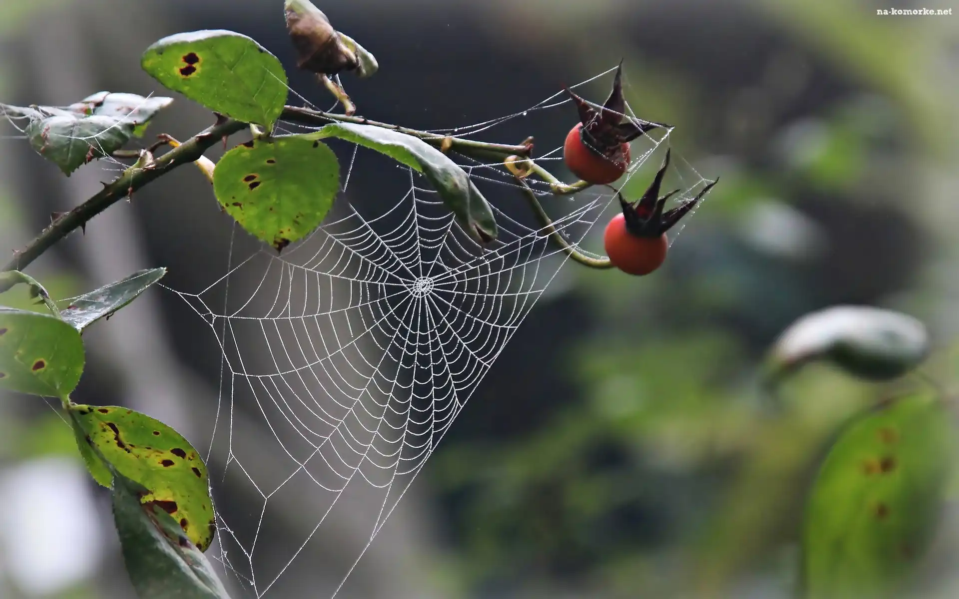 Pajęczyna, Makro, Dzika, Róża, Owoce na Komórkę