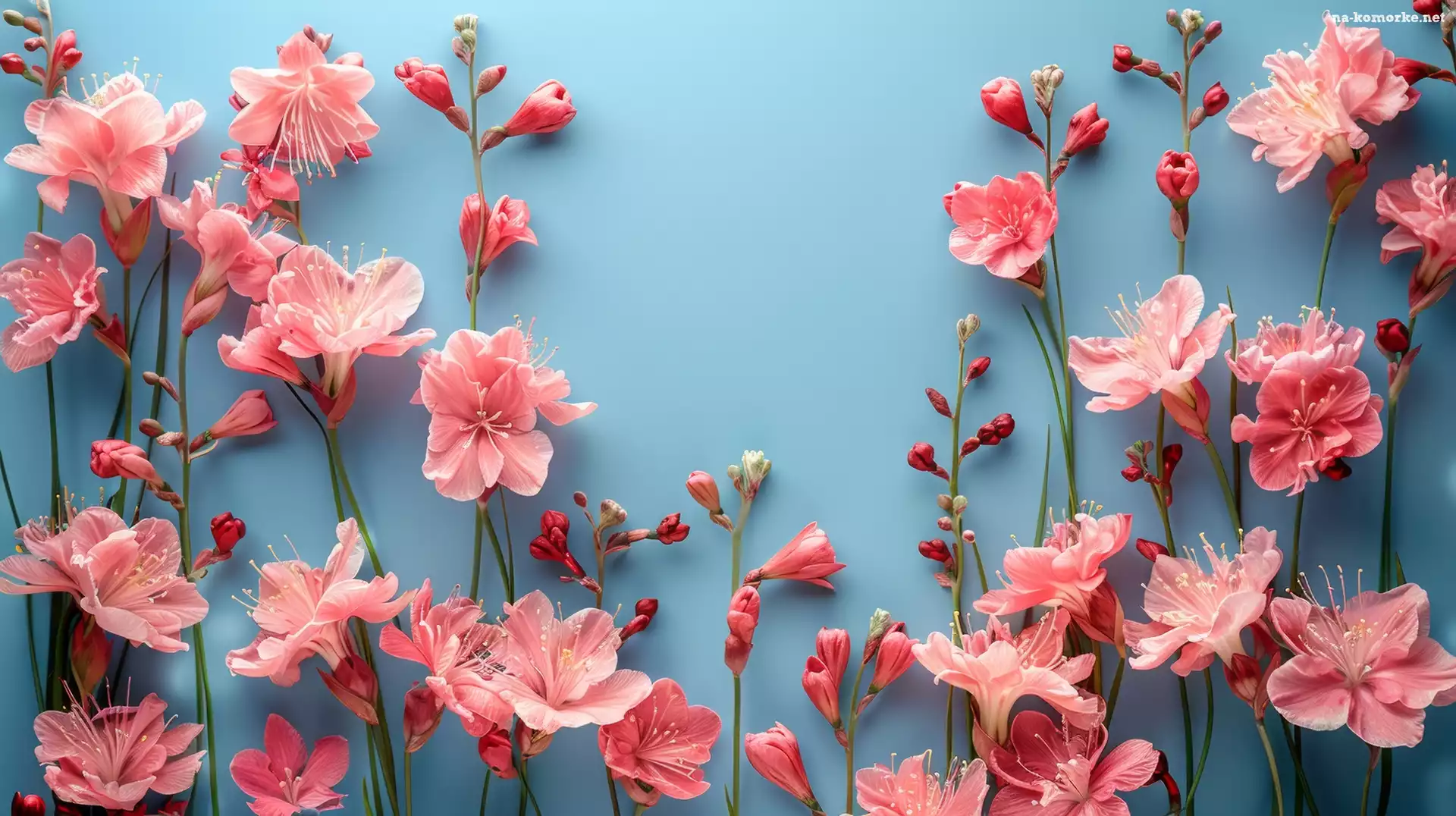 Różowe, Pąki, Niebieskie, Kwiaty, Tło na Komórkę