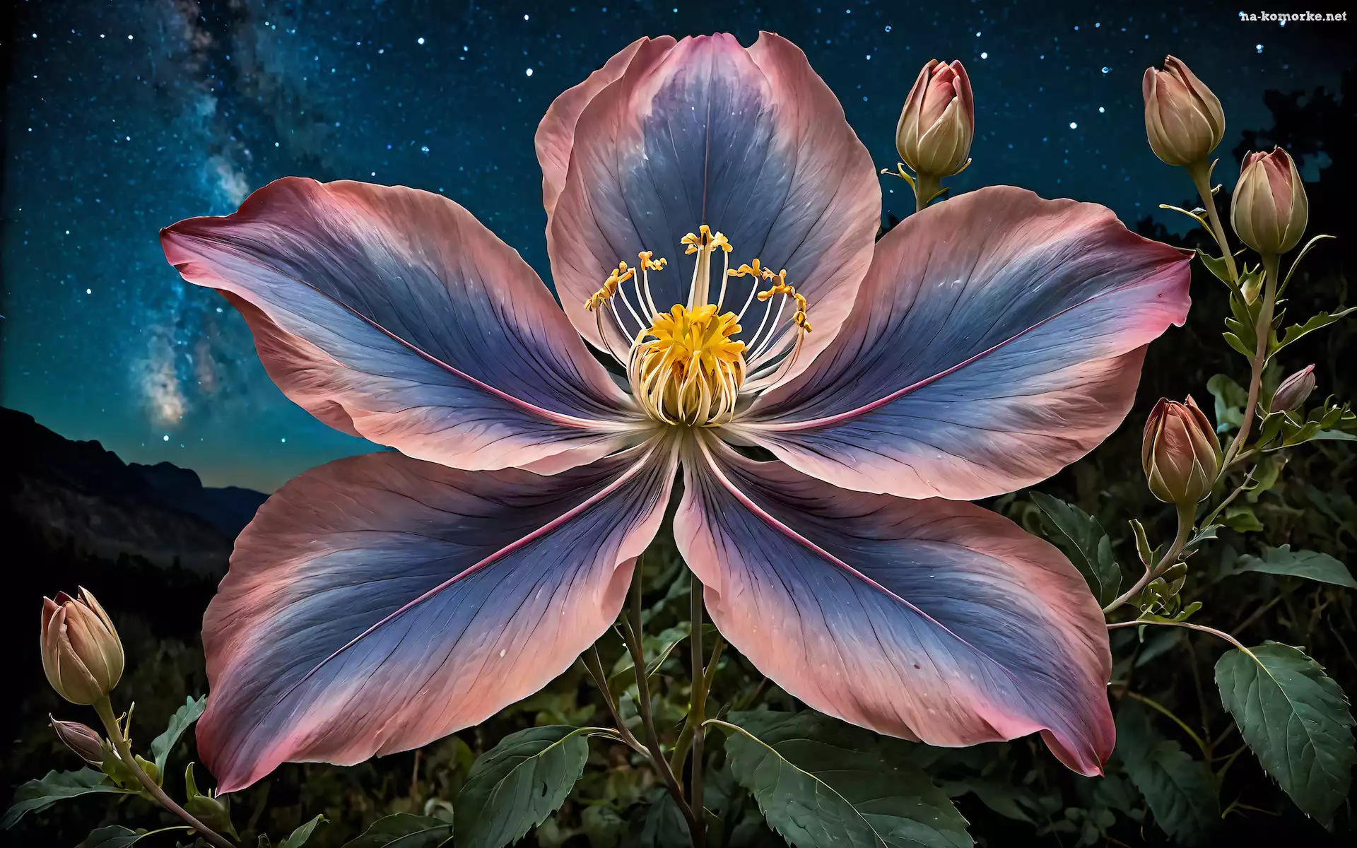Grafika, Pąki, Noc, Kwiat, Gwiazdy na Komórkę