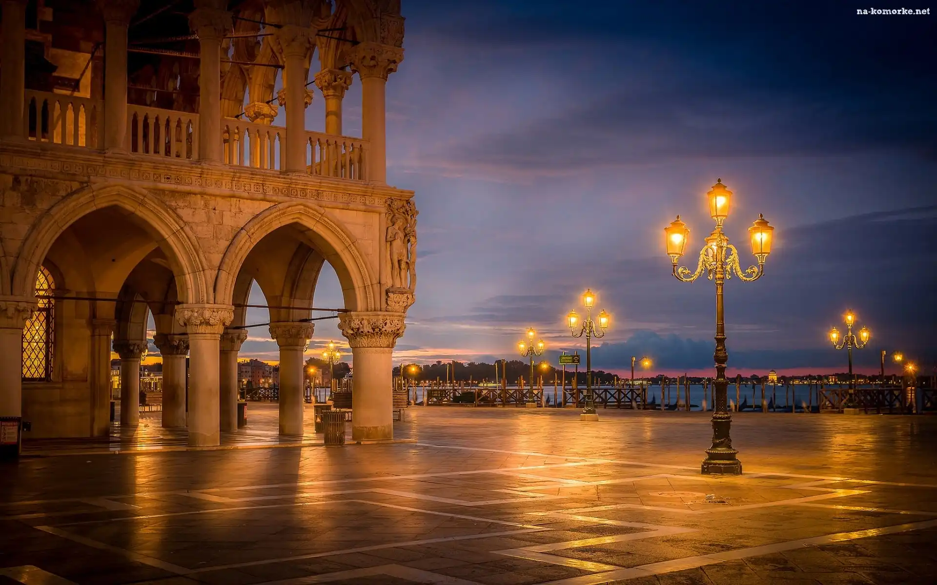 Włochy, Pałac Dożów, Plac Piazzetta, Latarnie, Wenecja na Komórkę