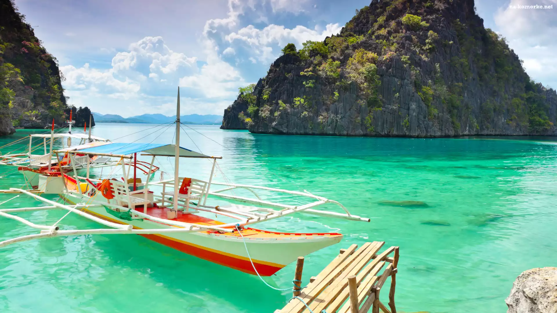 Morze, Palawan, Filipiny, Skały, Łódka, Laguna, Wyspa Coron na Komórkę
