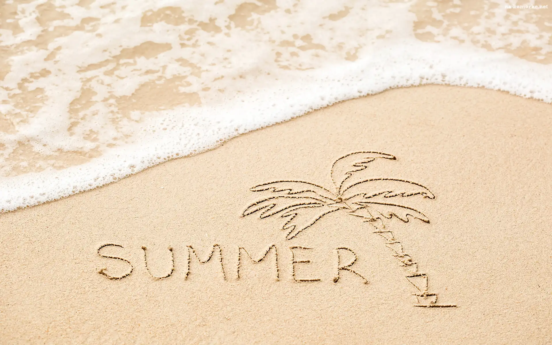 Plaża, Palma, Woda, Piasek, Napis, Summer, Lato na Komórkę