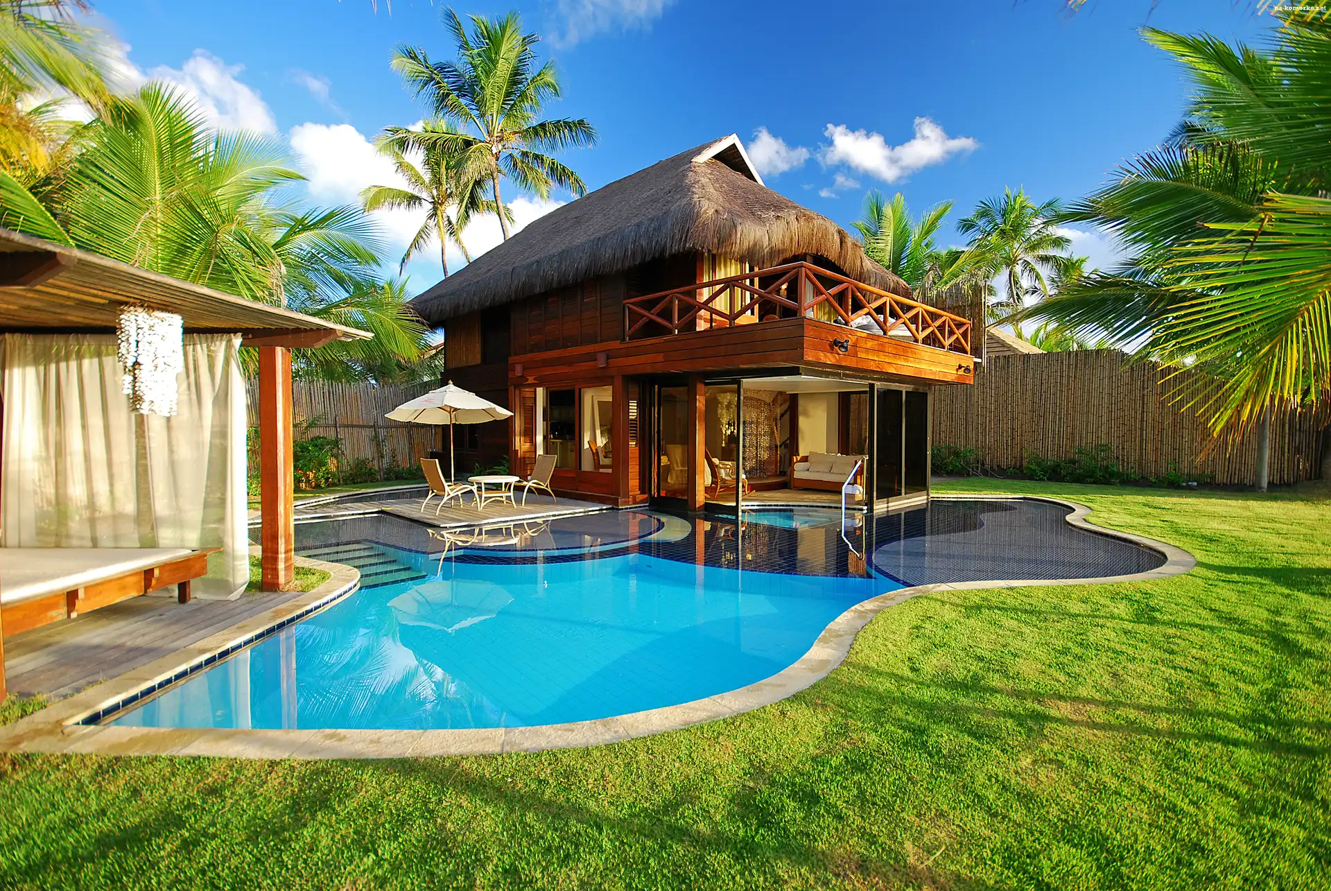 Palmy, Dom, Balkon, Basen, Trawa na Komórkę
