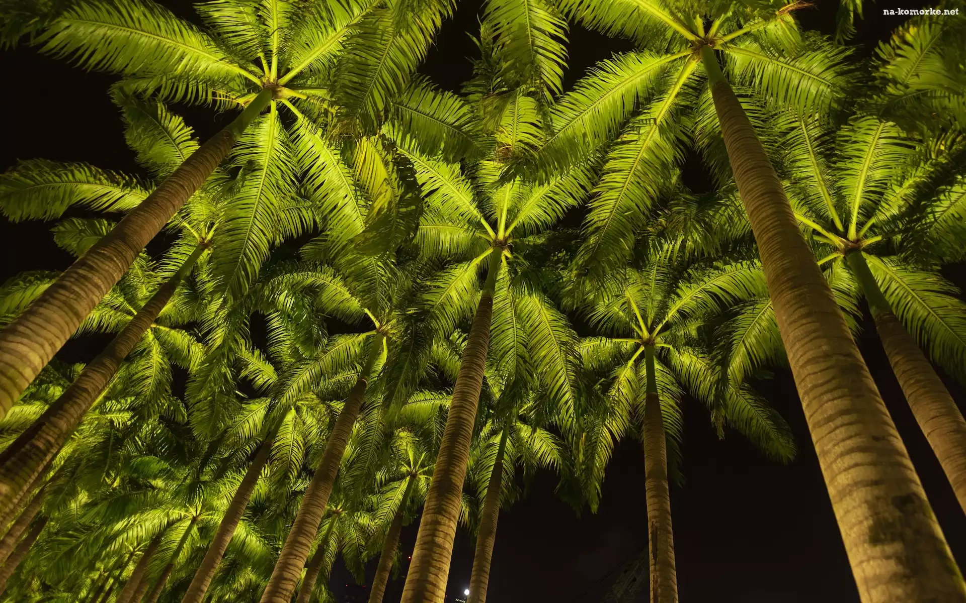 Noc, Grafika, Drzewa, Palmy na Komórkę
