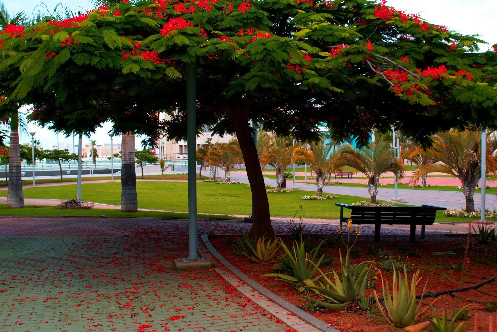 Ławka, Park, Drzewa, Palmy, Chodniki na Komórkę