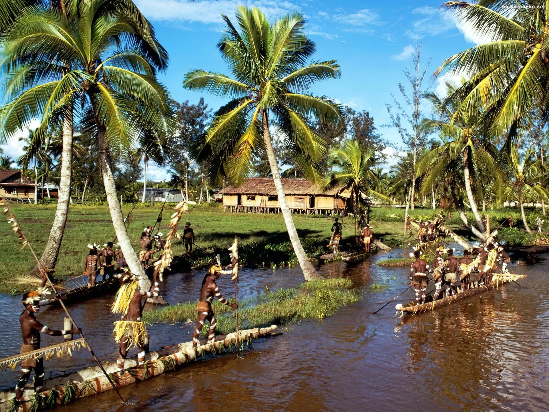 Palmy, Wyspa, Indonezja, Rzeka, Czółna na Komórkę