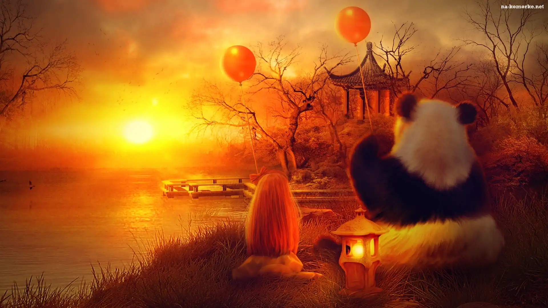 Panda, Dziewczynka, Mała, Słońca, Miś, Zachód na Komórkę