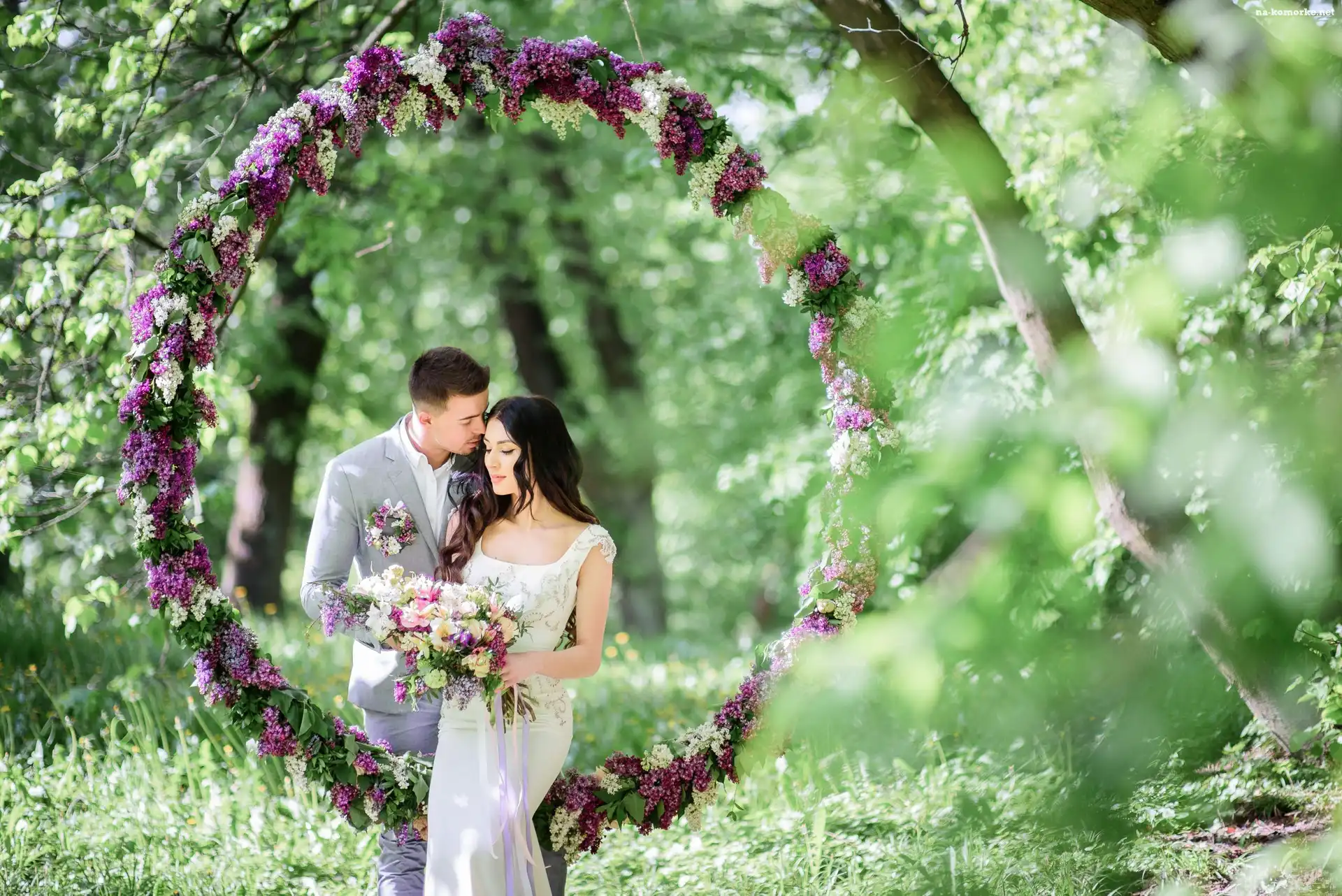 Kwiatowa, Panna młoda, Pan młody, Ślub, Poza, Dekoracja na Komórkę