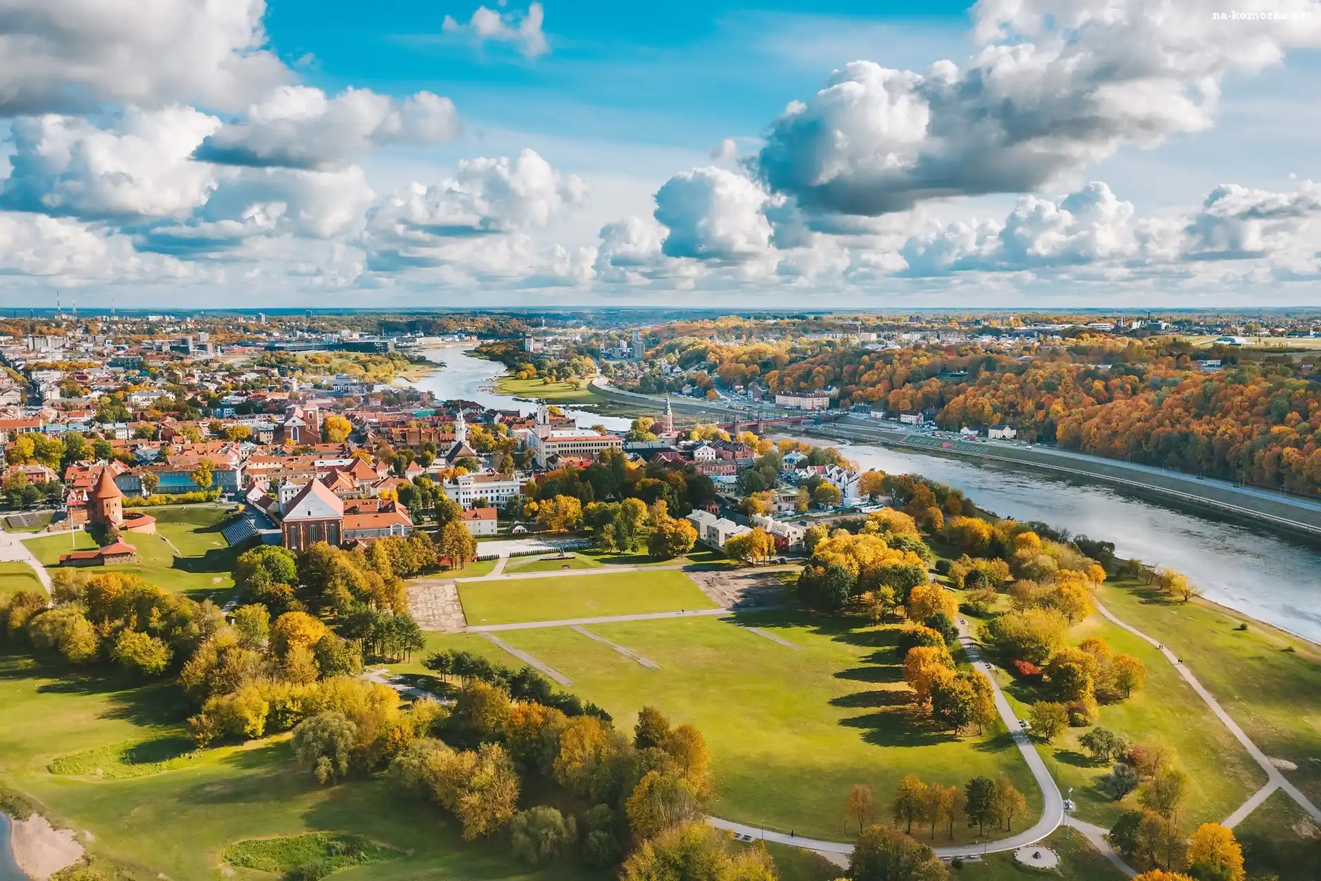 Panorama, Miasto, Kowno, Litwa, Rzeka na Komórkę