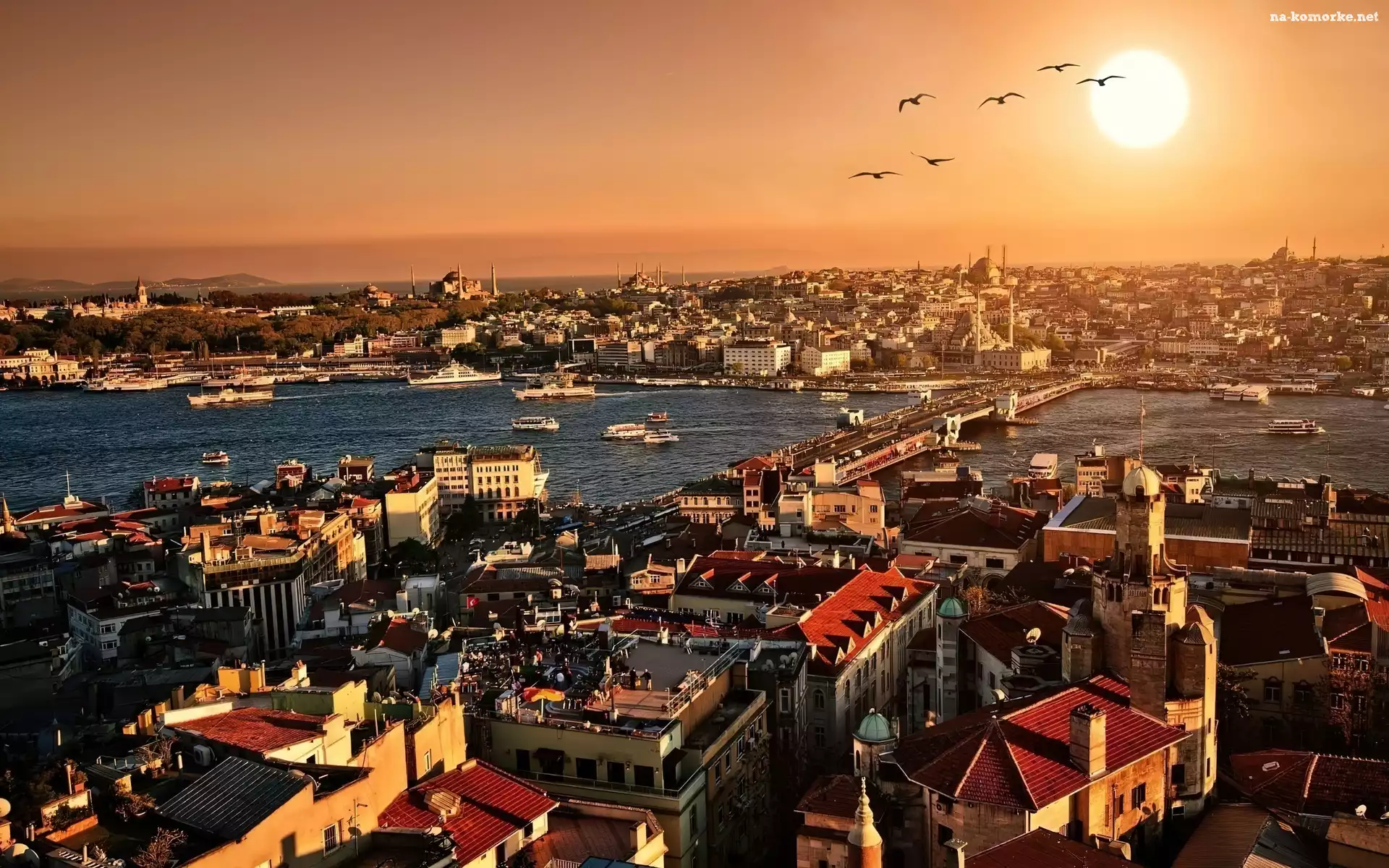 Panorama, Ptaki, Miasta, Rzeka na Komórkę