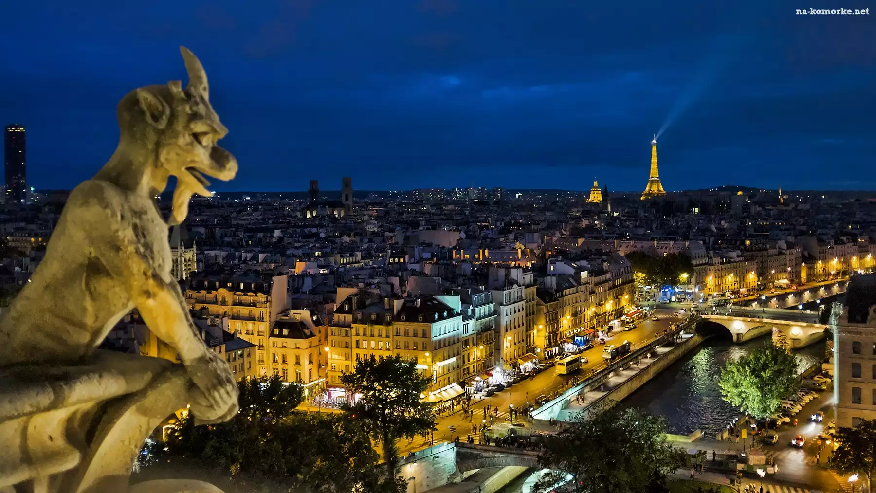 Panorama, Posąg, Paryż, Noc na Komórkę