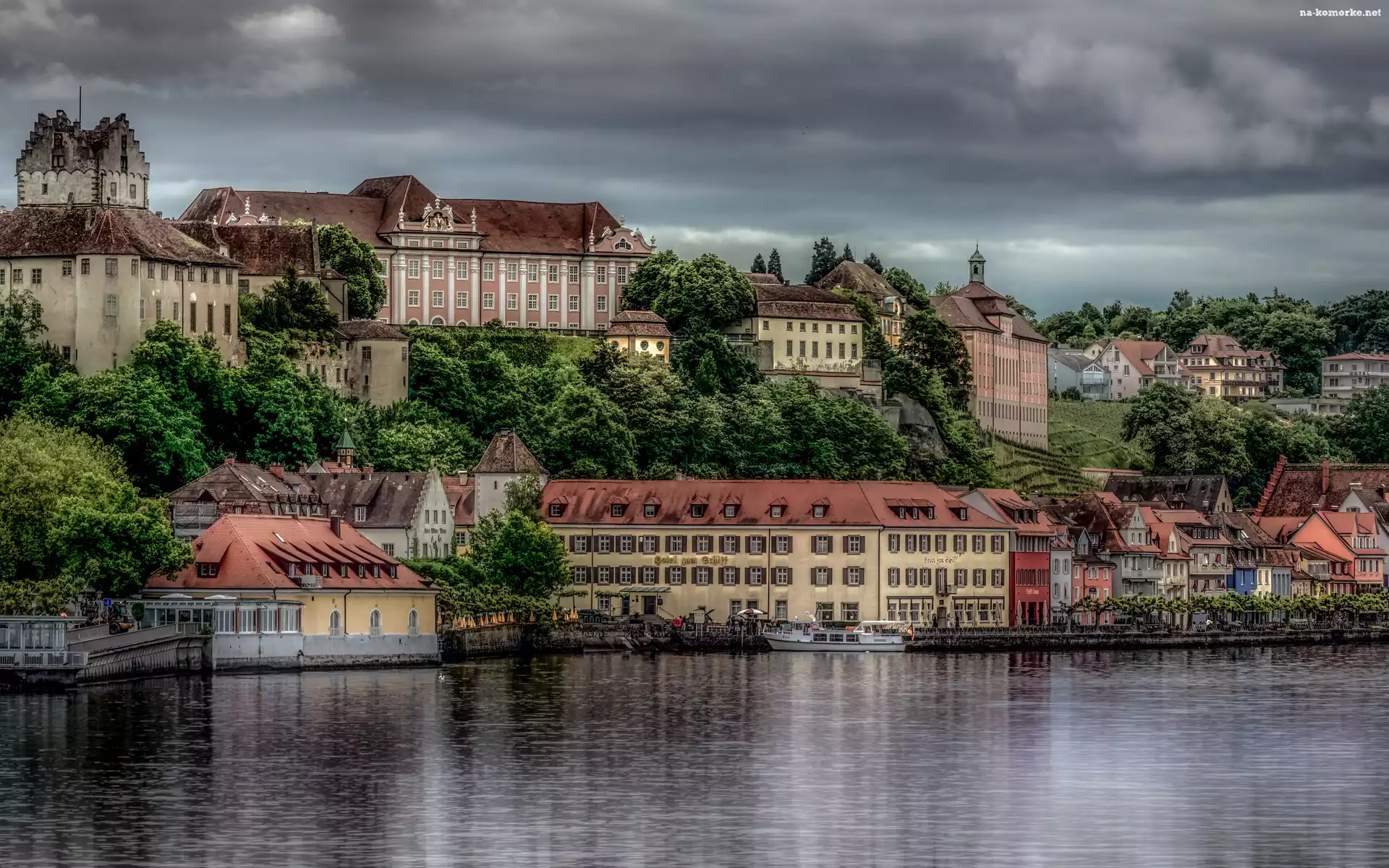 Niemcy, Nabrzeże, Wintenbergia, Budynki, Badenia, Jezioro Bodeńskie, Mersburg, Panorama na Komórkę |
