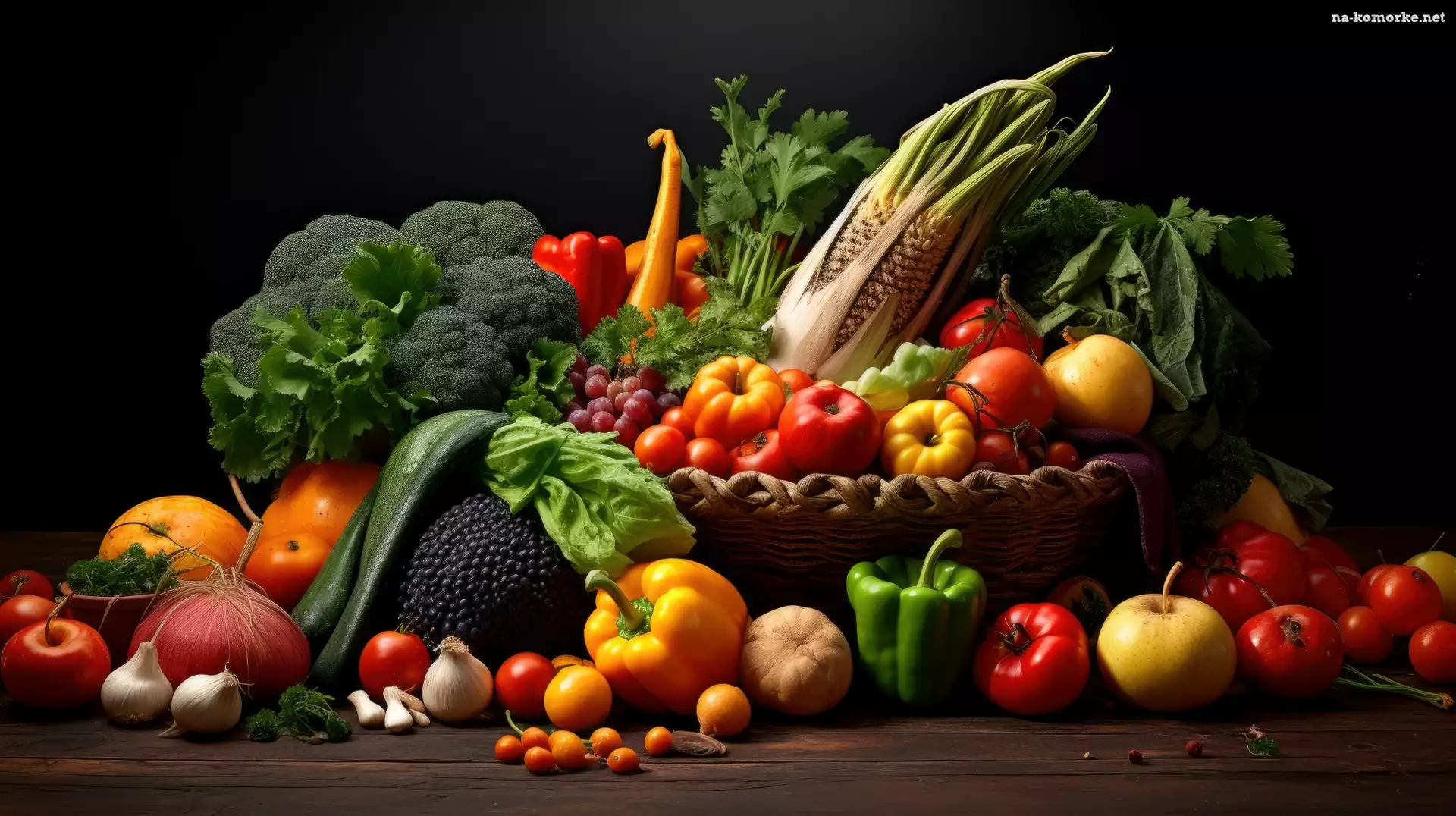 Jabłka, Brokuły, Warzywa, Kosz, Czarne, Pomidory, Winogrona, Kukurydza, Czosnek, Papryka, Tło, Owoce na Komórkę |