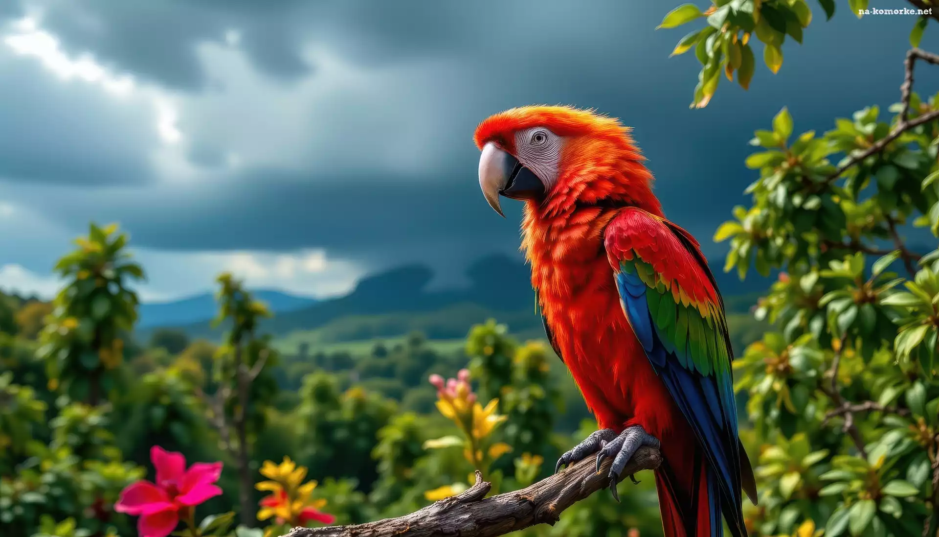 Ciemne, Chmury, Ptak, Grafika AI, Ara, Konar, Papuga na Komórkę