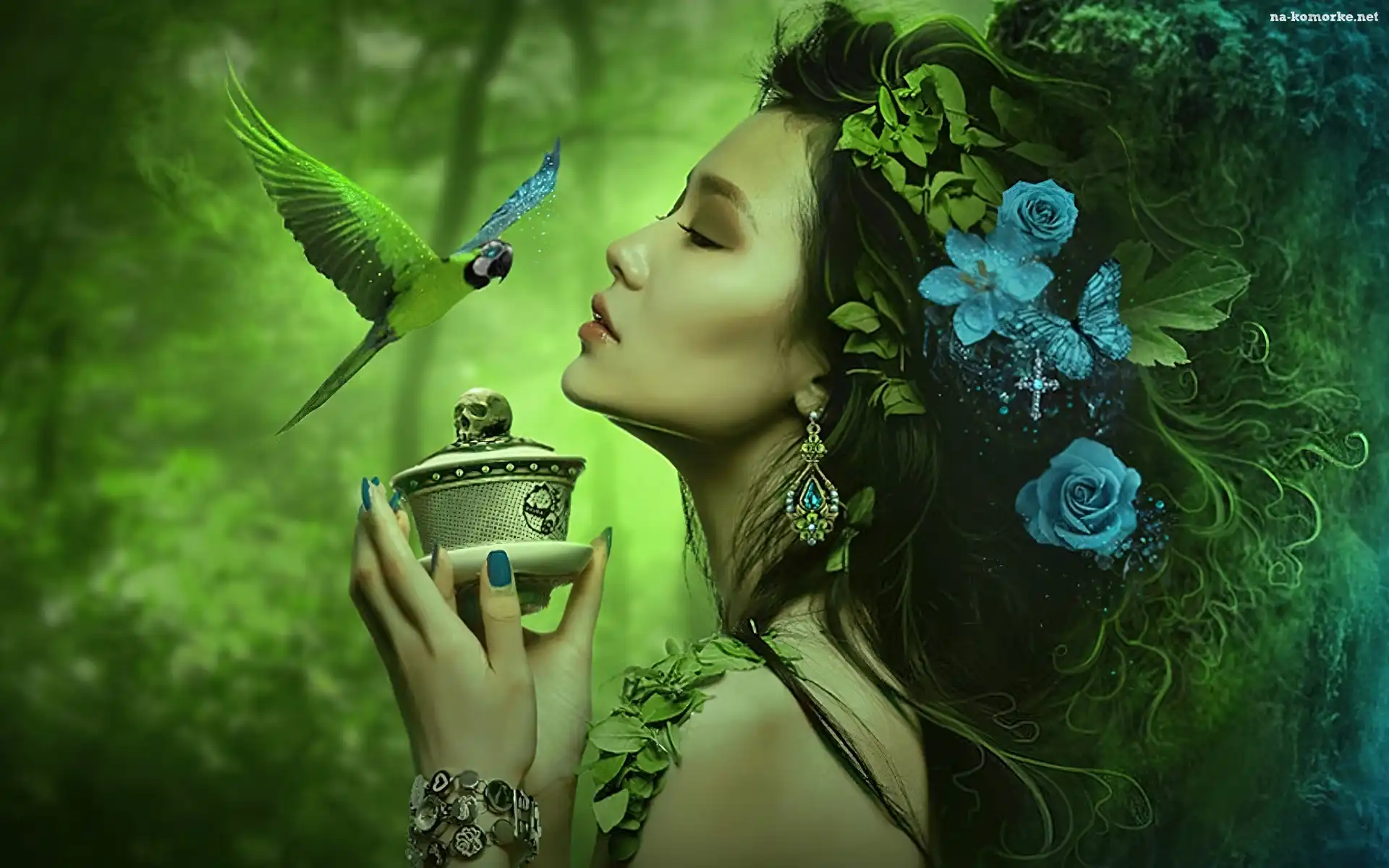 Kobieta, Papużka, Kwiaty na Komórkę