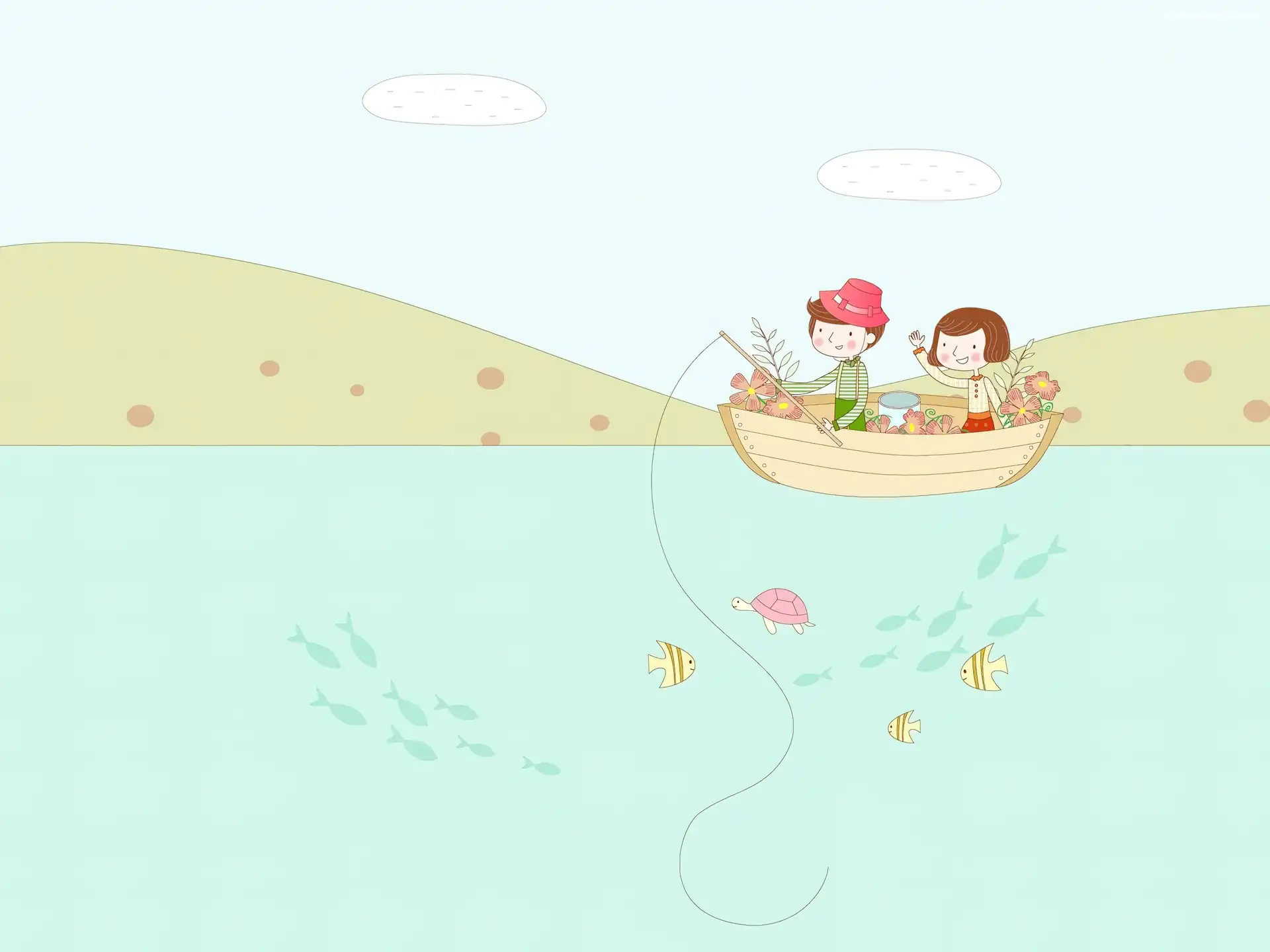 Para, Grafika, Jezioro, Ryby na Komórkę