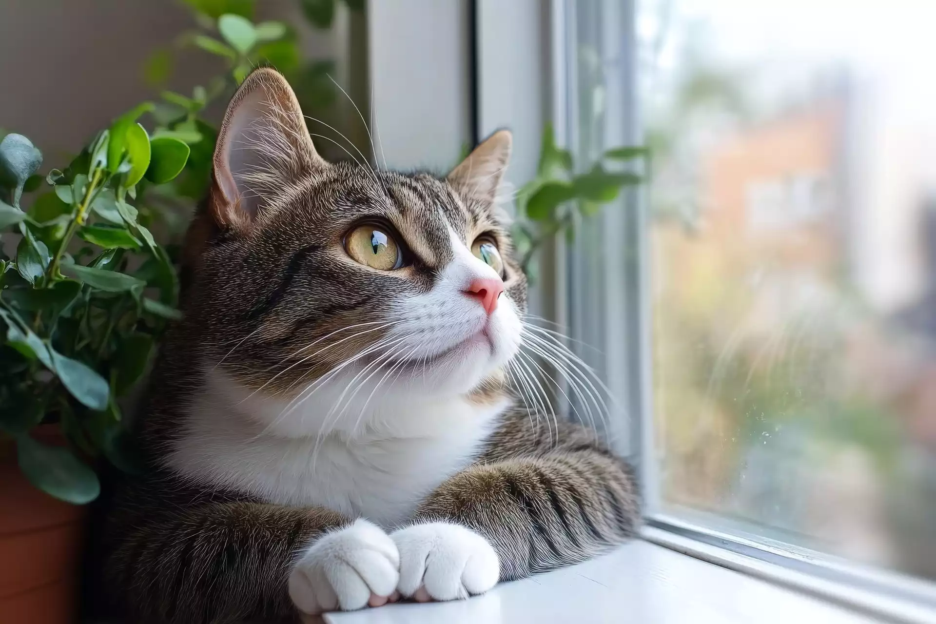 Okno, Parapet, Biało-szary, Kot na Komórkę