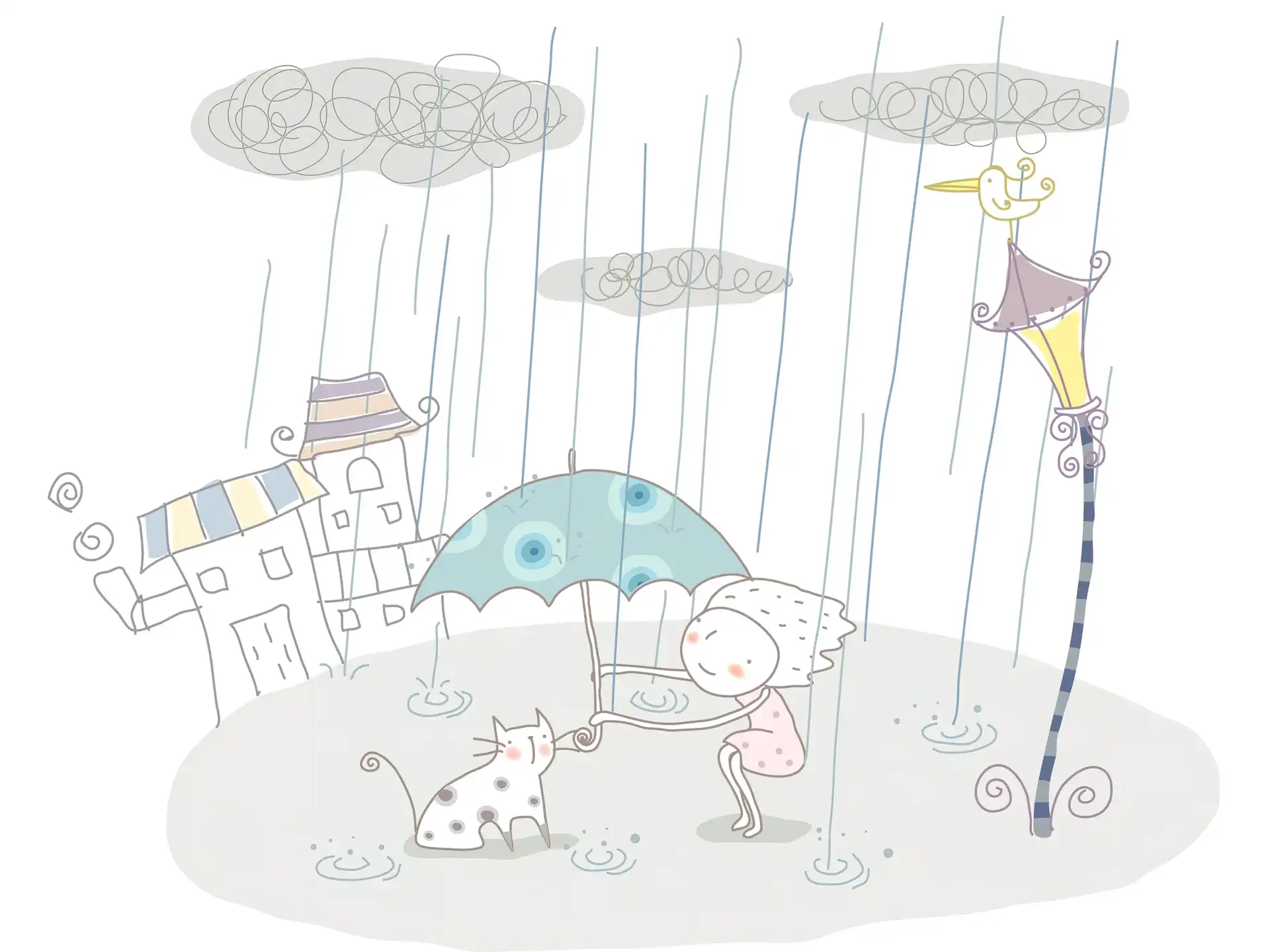 Dziewczynka, Parasol Dla dzieci, Deszcz, Kot na Komórkę