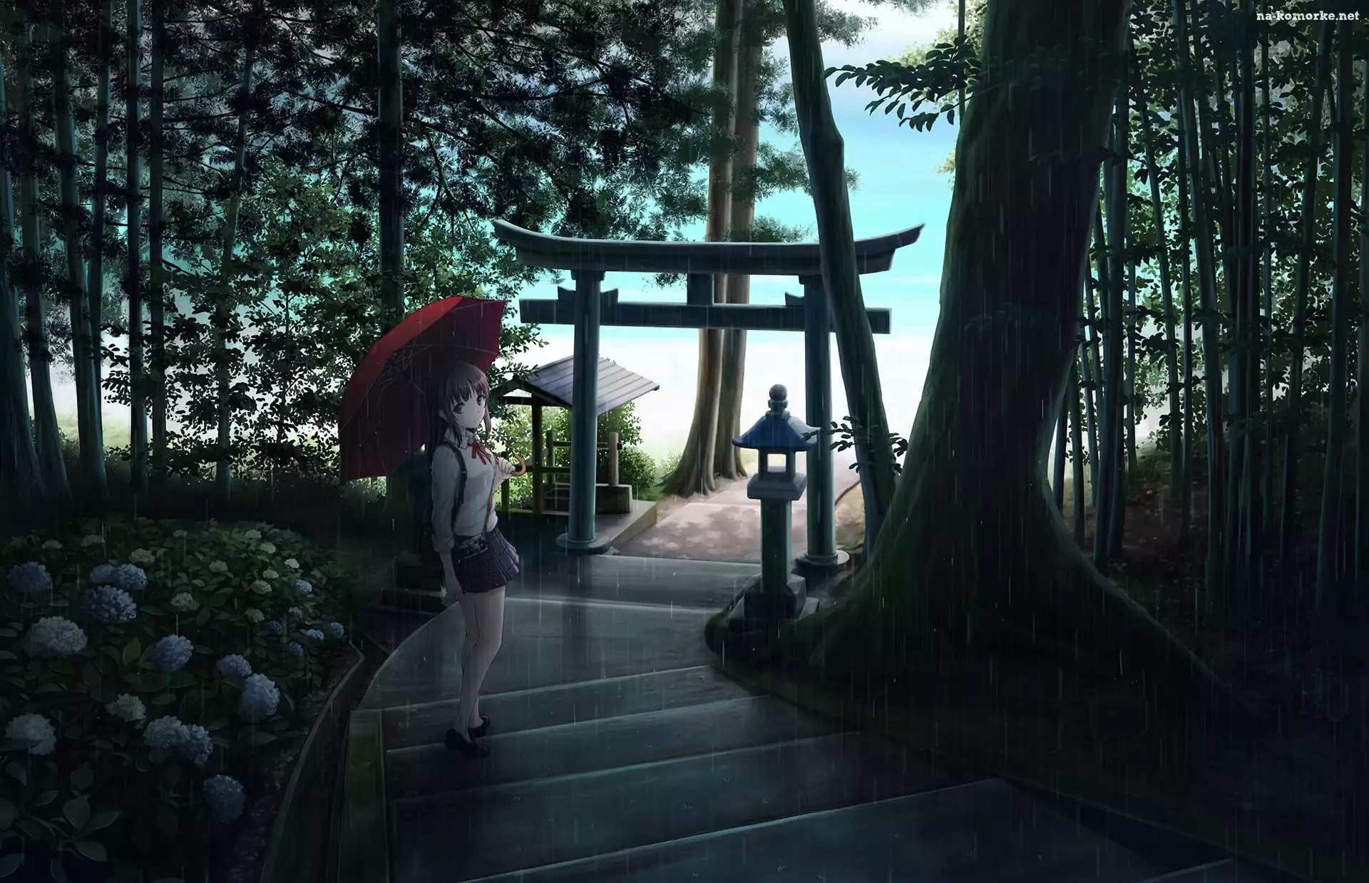Dziewczyna, Parasol, Deszcz na Komórkę