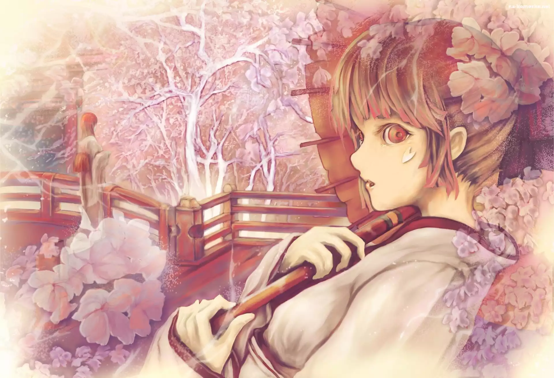Dziewczyna, Parasol, Kwiaty na Komórkę