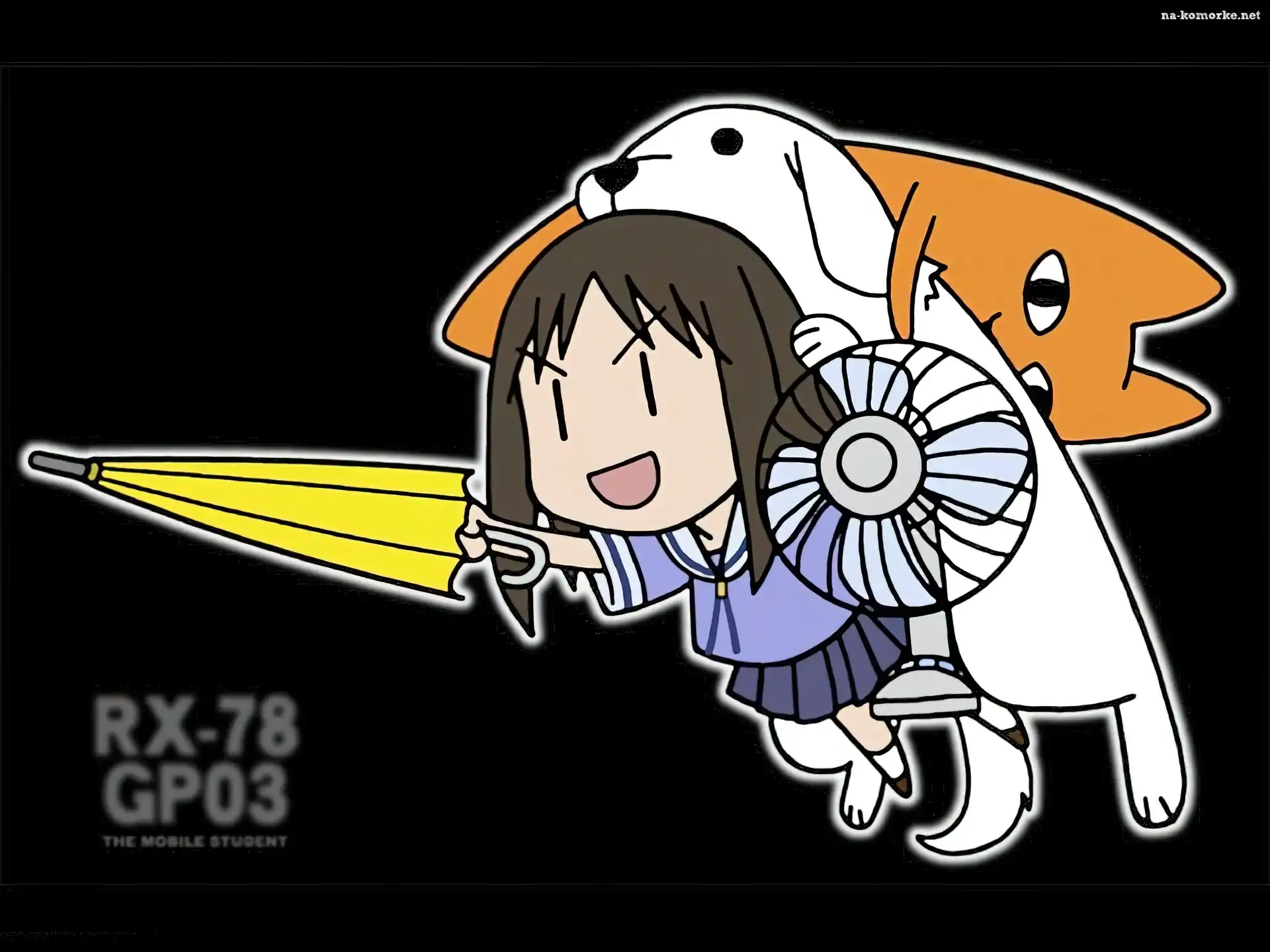 Parasolka, Azumanga Daioh, pies, kot, dziewczyna na Komórkę