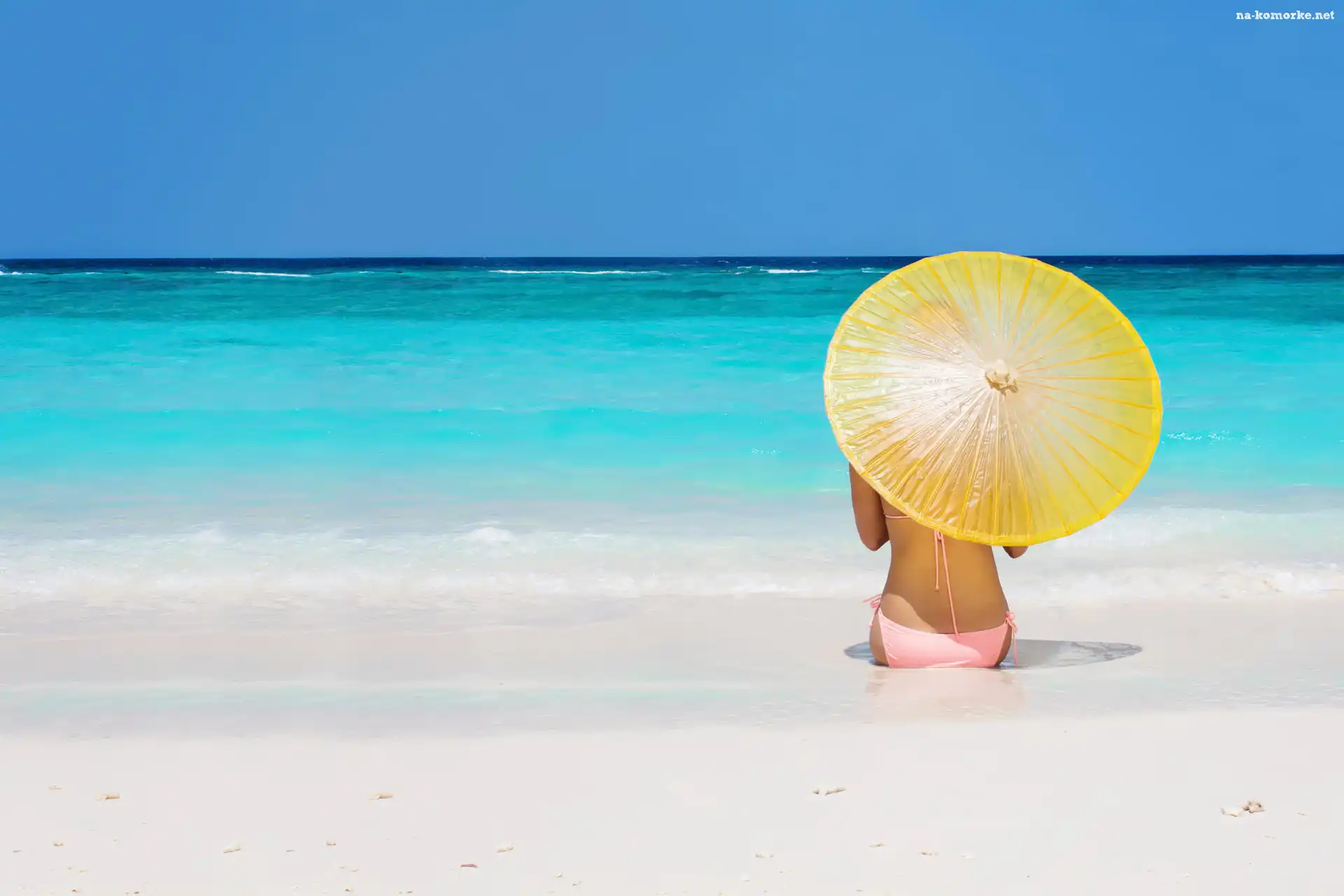 Parasolka, Morze, Plaża, Lato, Kobieta na Komórkę