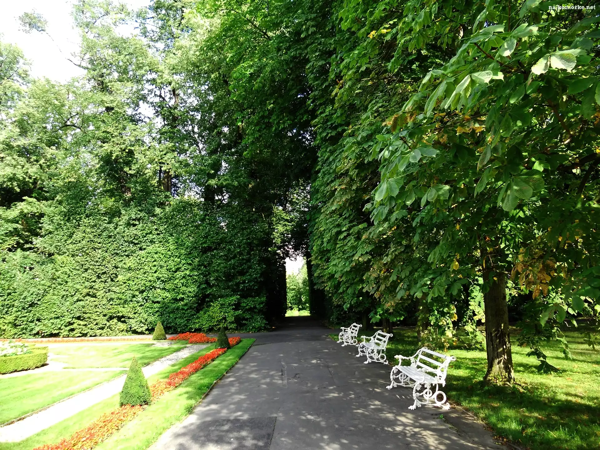 Park, Drzewa, Aleja, Ławki na Komórkę