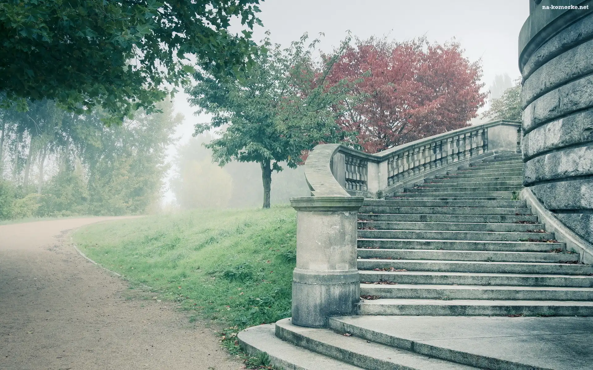Park, Drzewa, Aleja, Schody na Komórkę