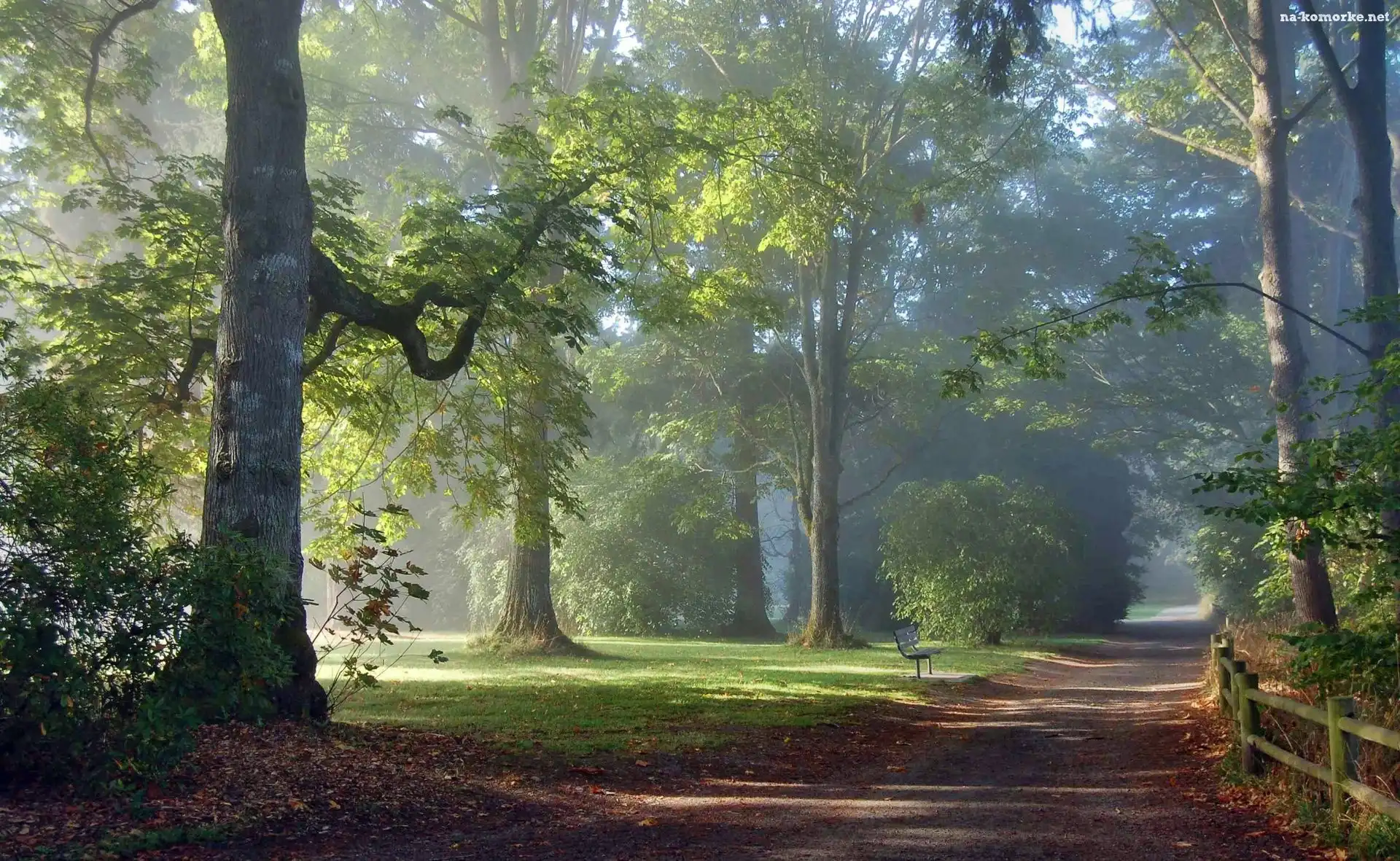 Park, Mgła, Aleja, Poranek na Komórkę