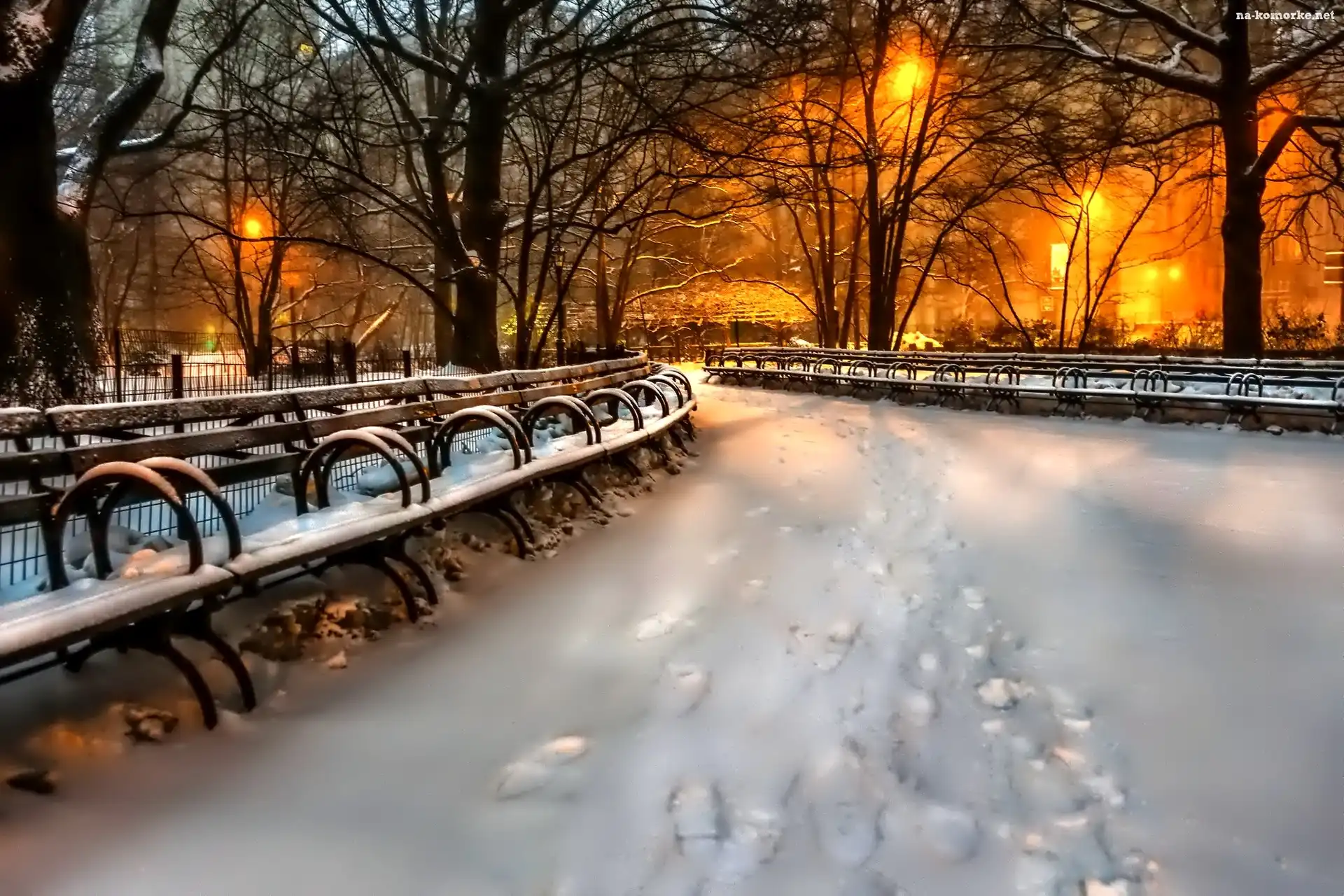 Park, Oświetlenie, Alejka, Śnieg na Komórkę
