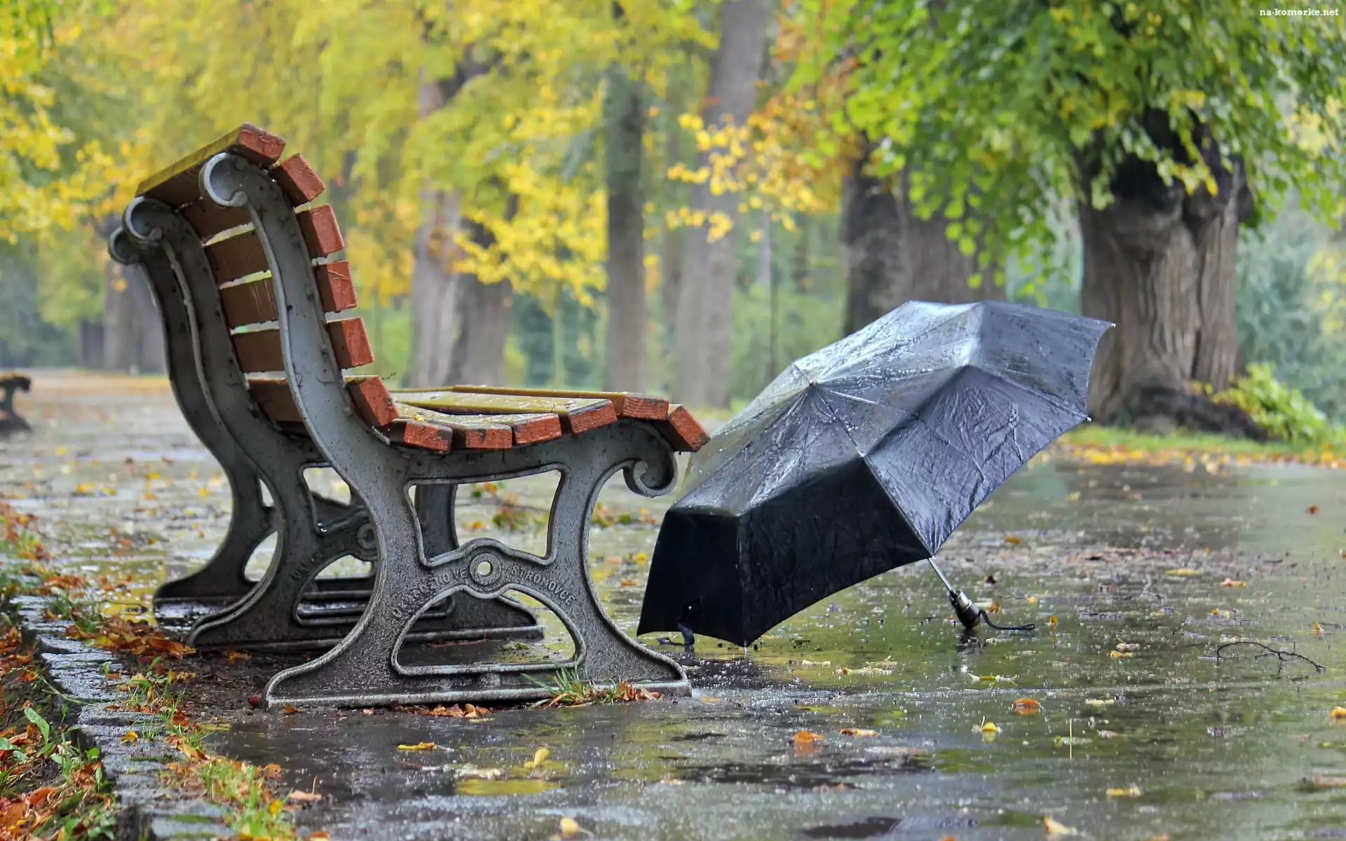 Park, Jesień, Ławka, Parasol na Komórkę