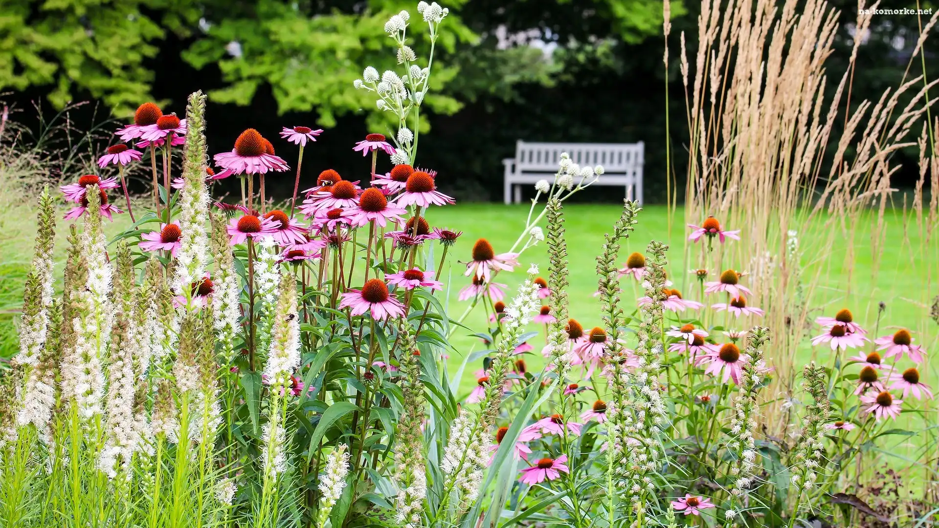 Park, Kwiaty, Ławka, Jeżówka na Komórkę