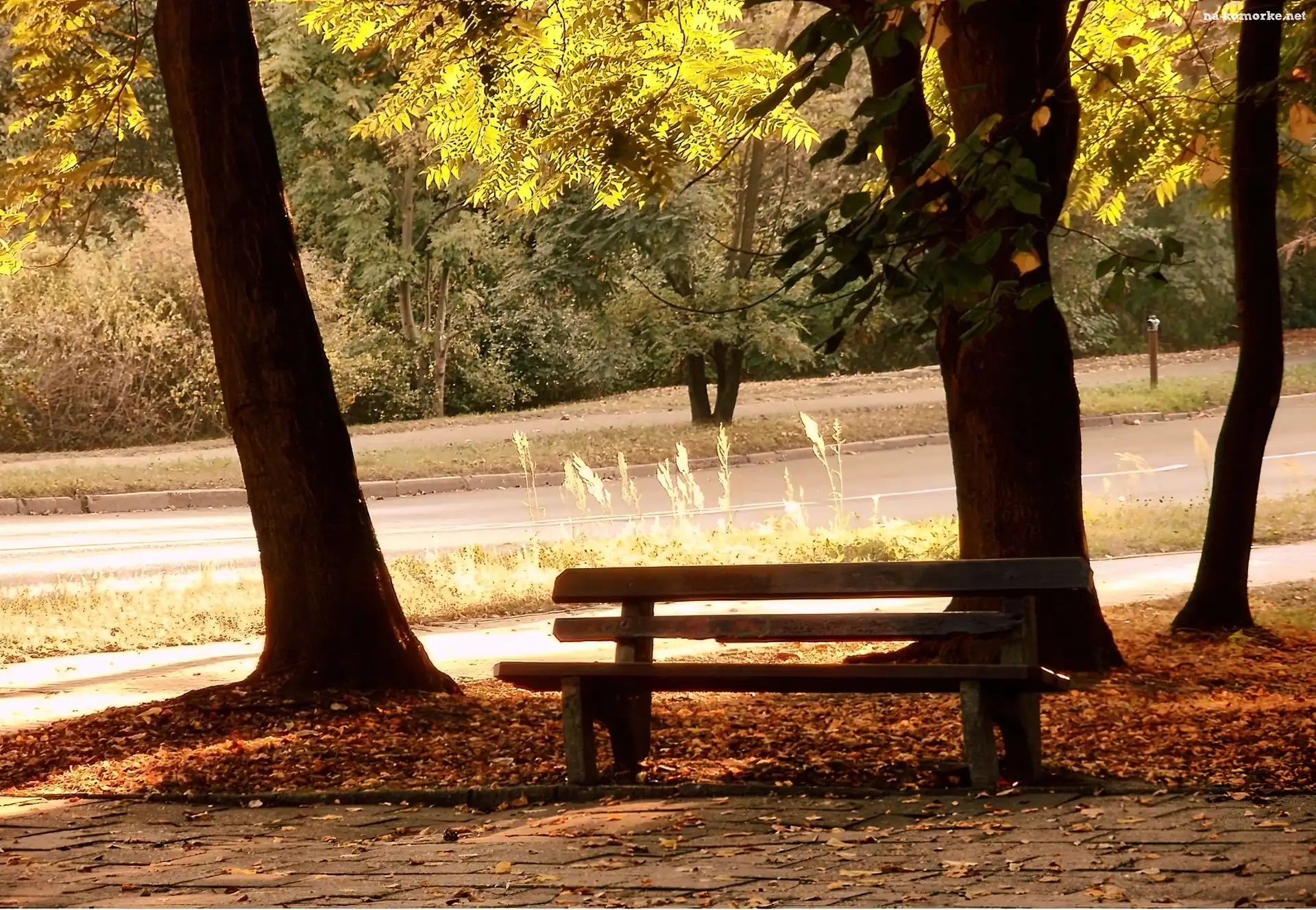 Park, Liście, Ławka, Drzewa na Komórkę