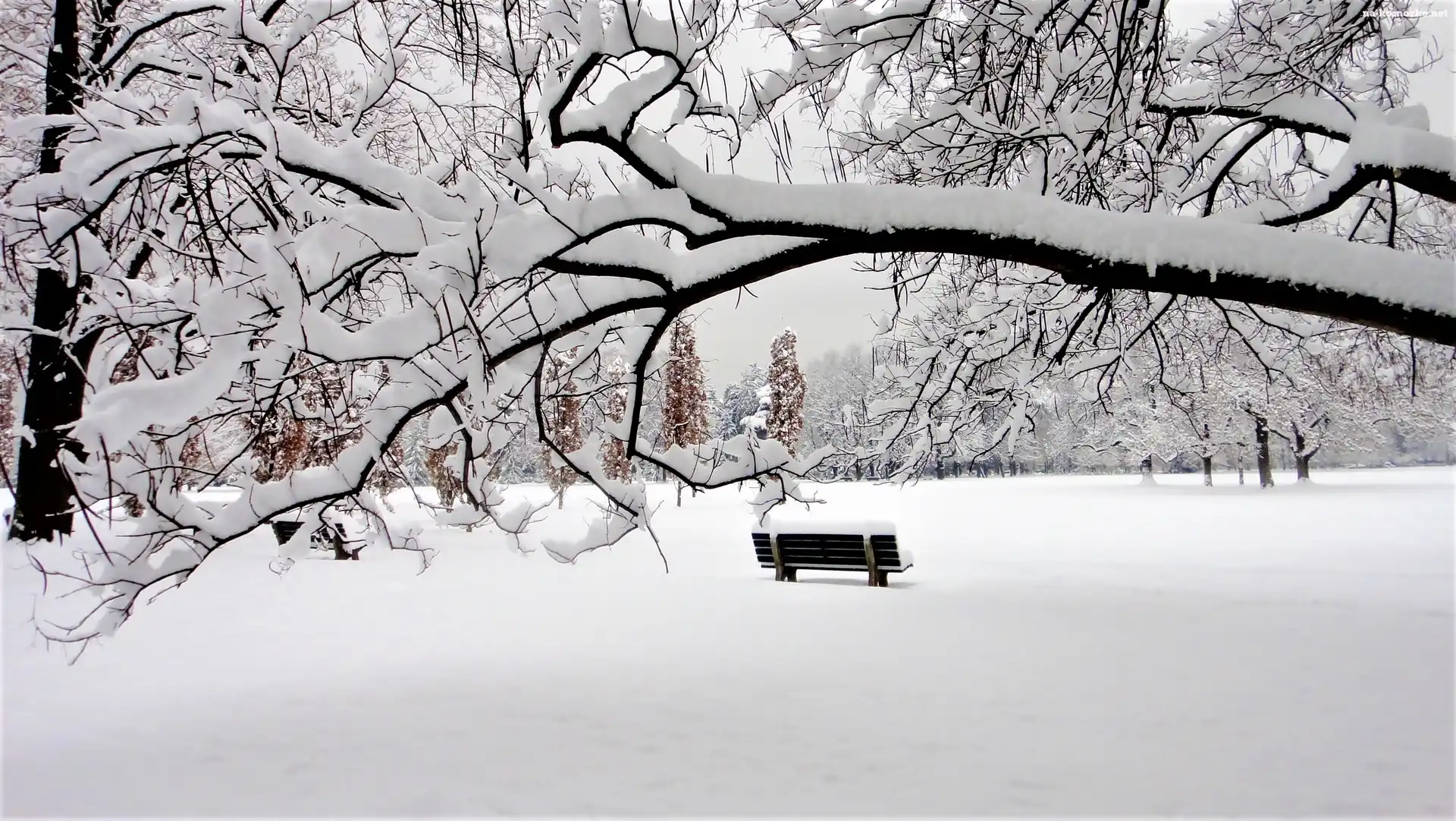 Park, Zima, Ławki, Drzewa na Komórkę