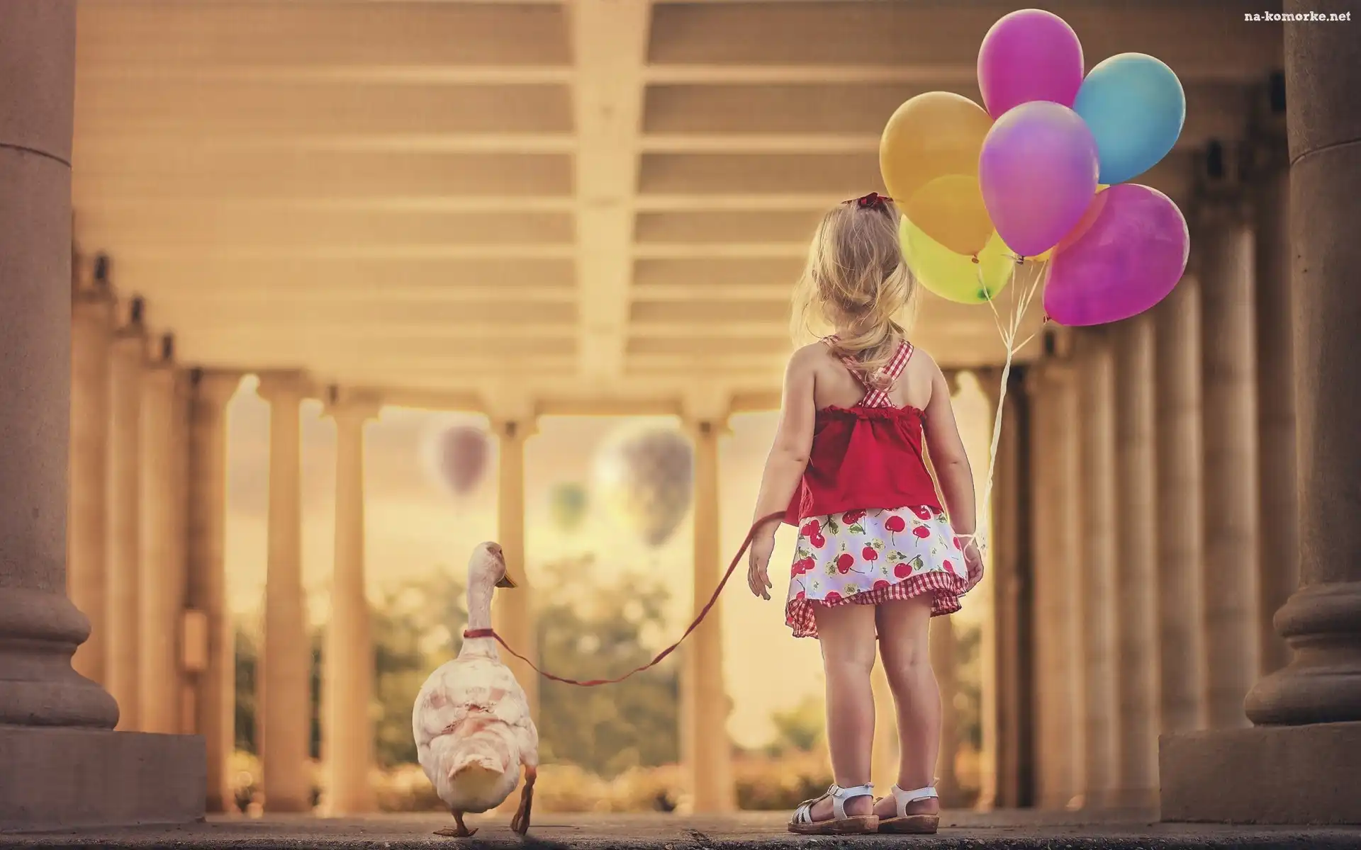 Park, Dziewczynka, Kolorowe, Baloniki, Gąska na Komórkę