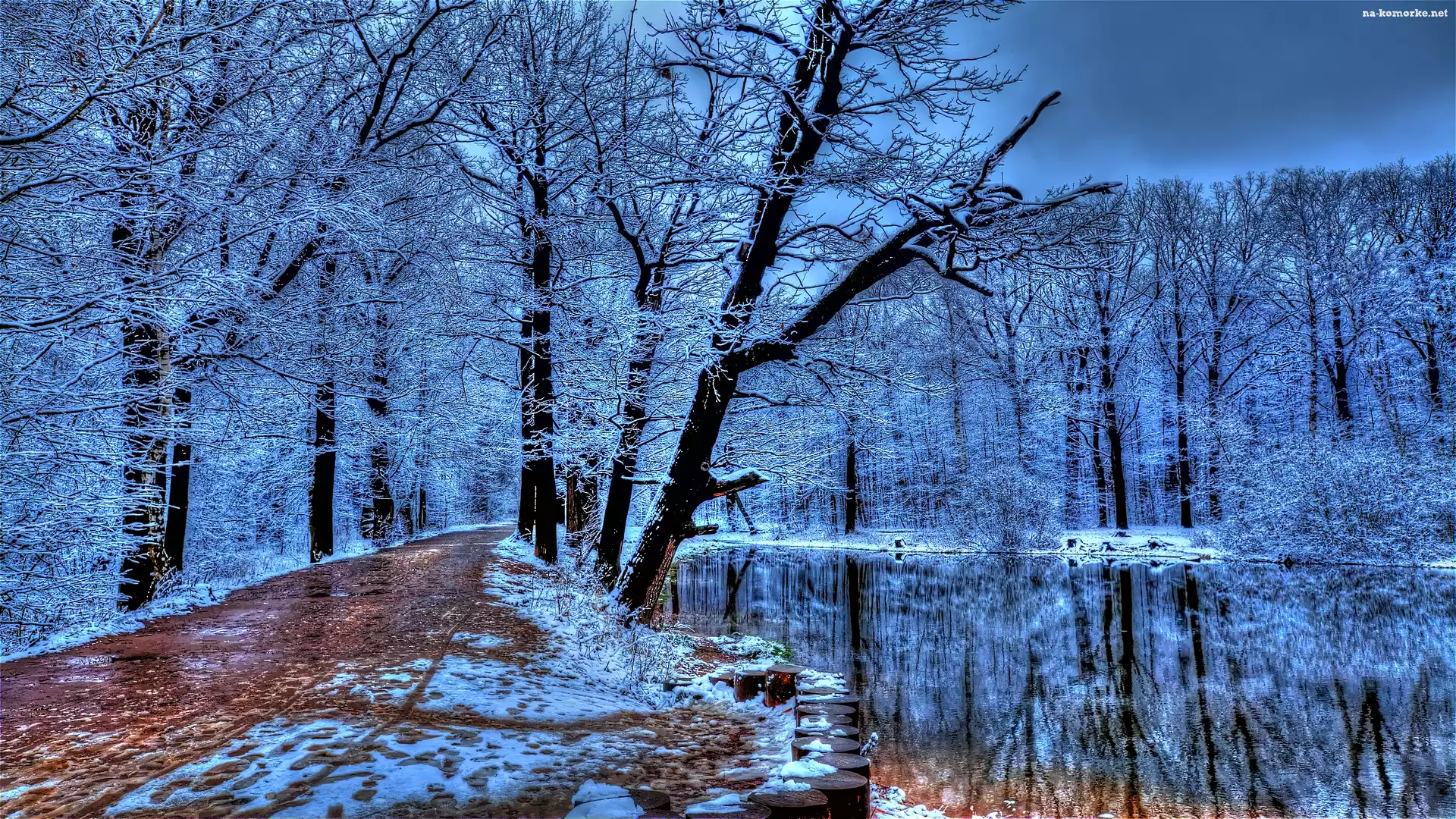 Park, Zima, Droga, Rzeka na Komórkę
