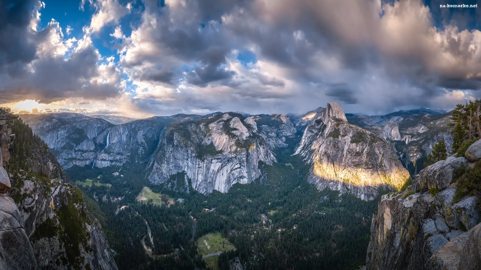 Park Narodowy Yosemite, Dolina, Stany Zjednoczone, Sierra Nevada, Kalifornia, Skały, Góry, Yosemite Valley, Drzewa, Roślinność na Komórkę |
