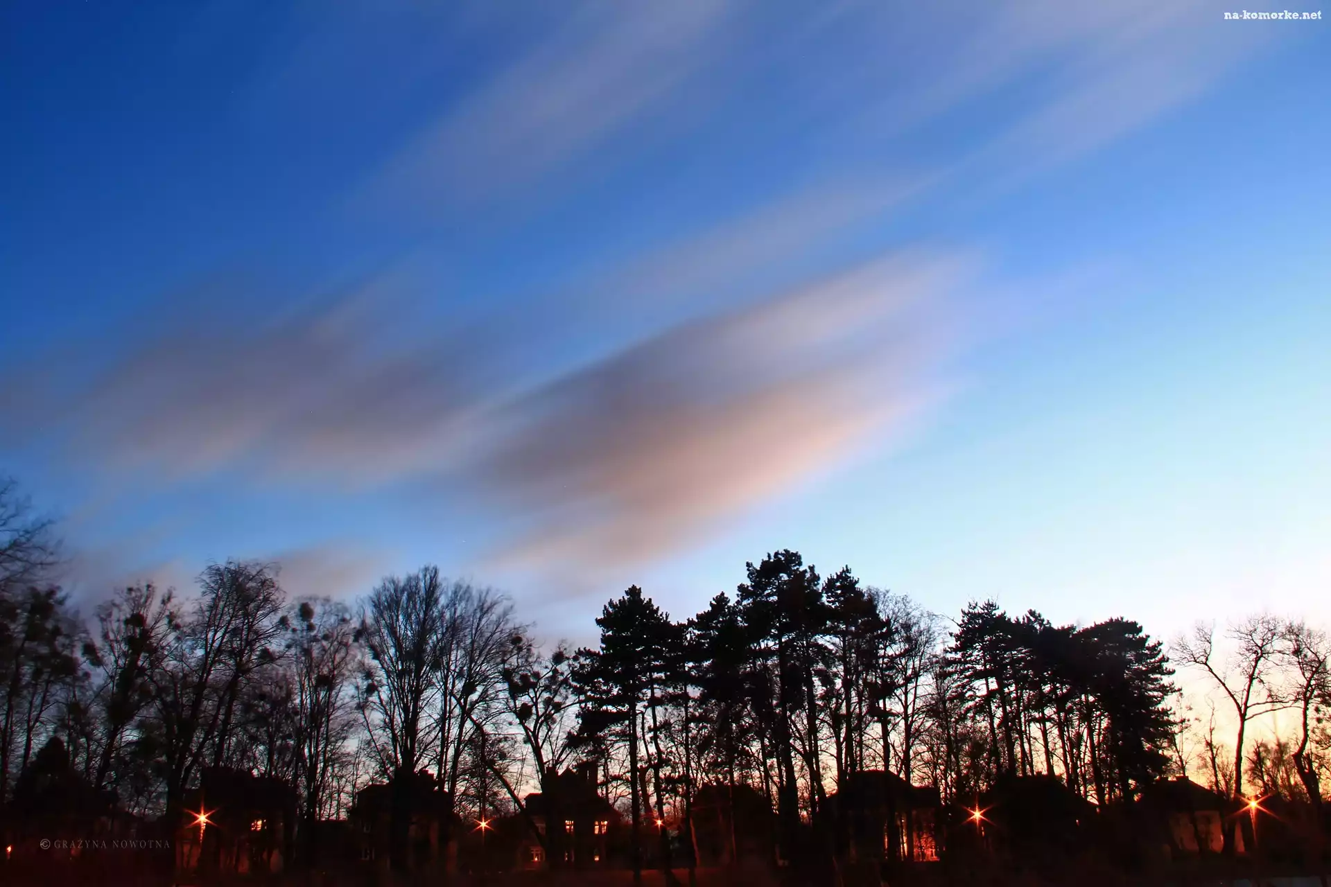 Park, Niebo, Drzewa, Wieczór na Komórkę