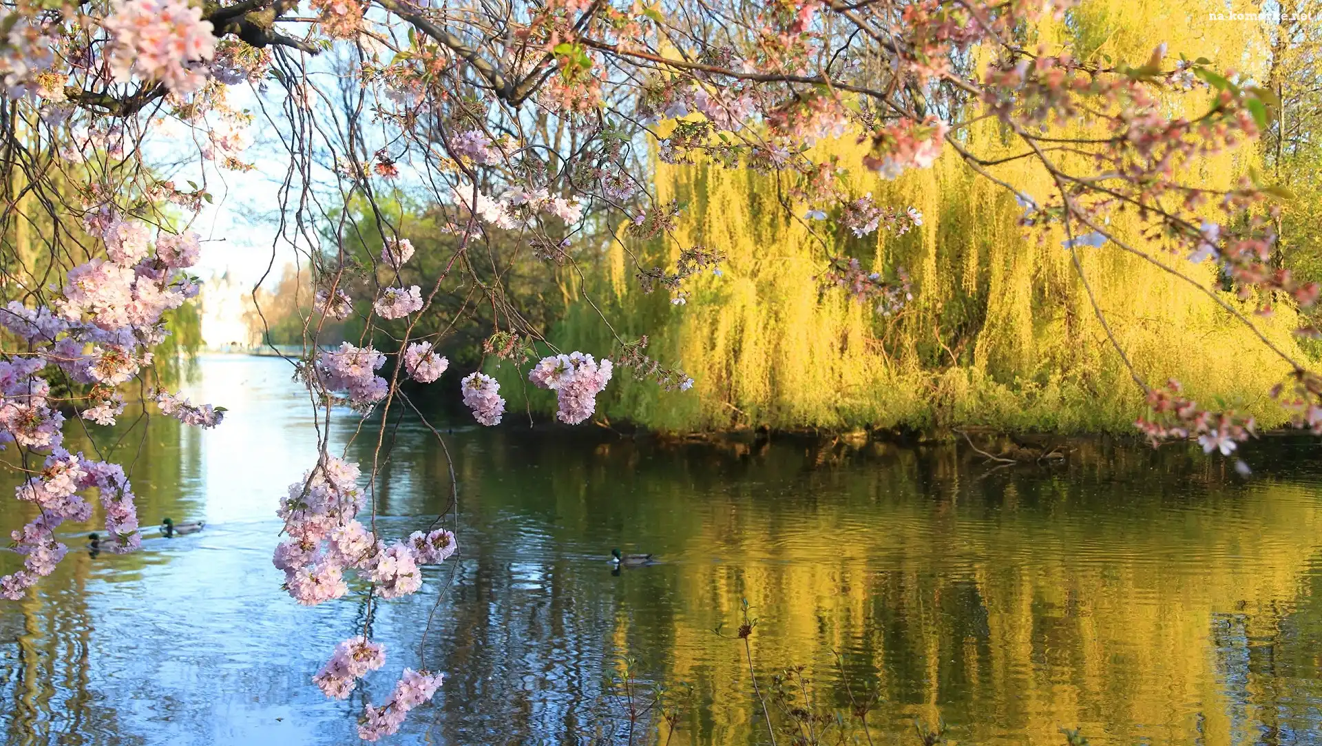Park, Rzeczka, Kwitnące, Drzewo, Zarośla na Komórkę