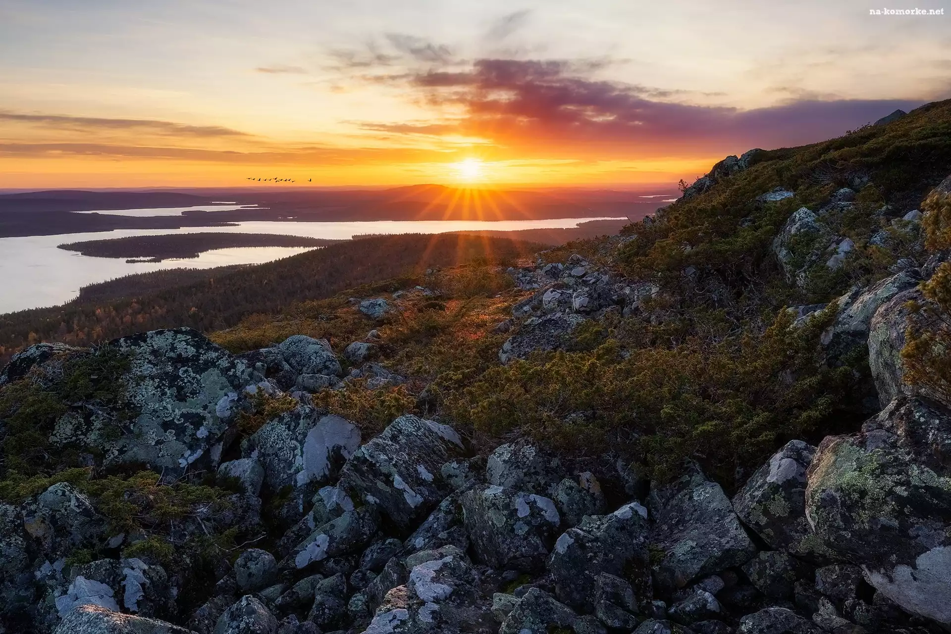 Park Narodowy Pallas-Yllastunturin, Góry, Niebo, Finlandia, Ptaki, Skały na Komórkę