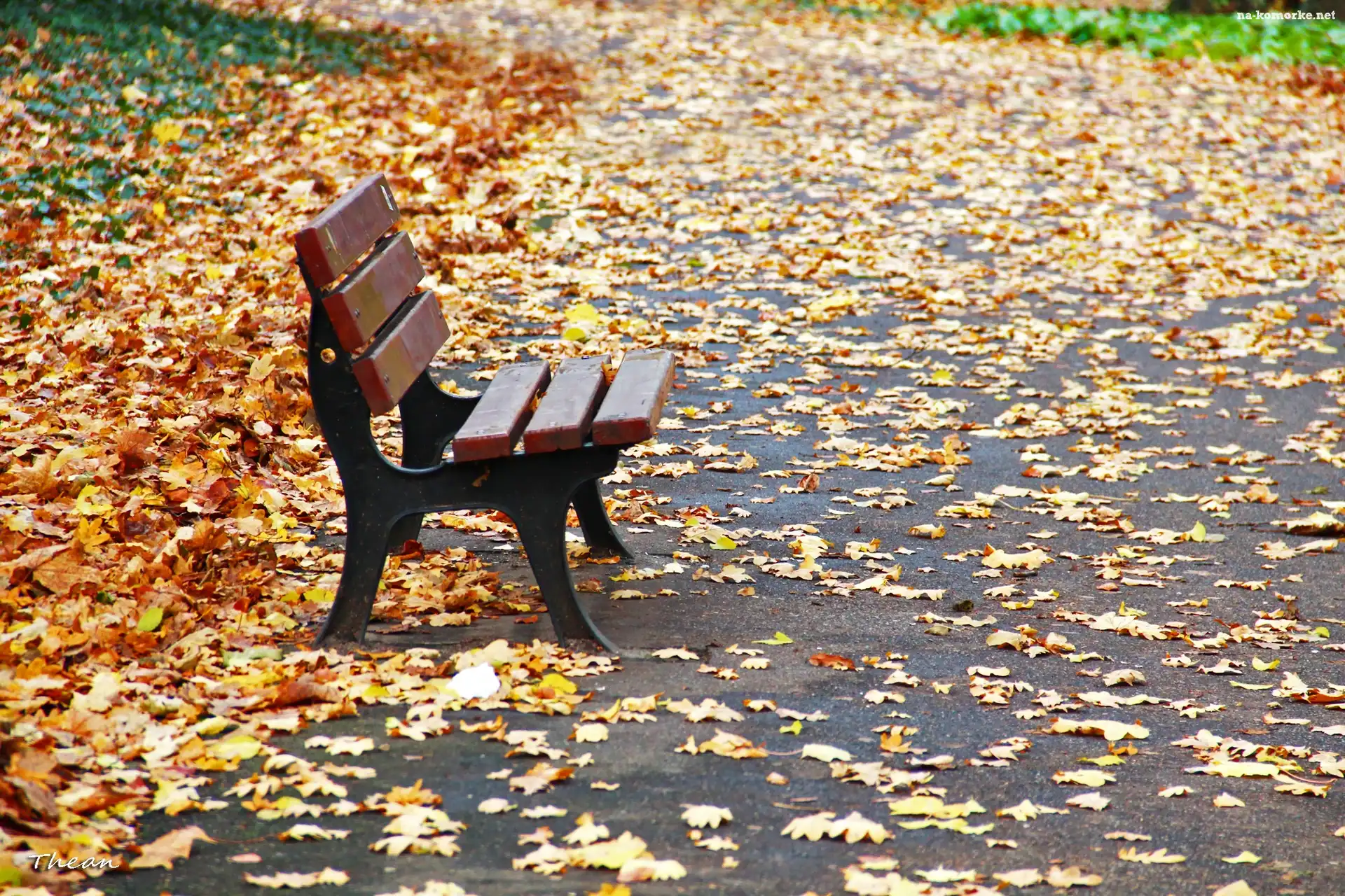 Ławka, Jesień, Park, Liście na Komórkę