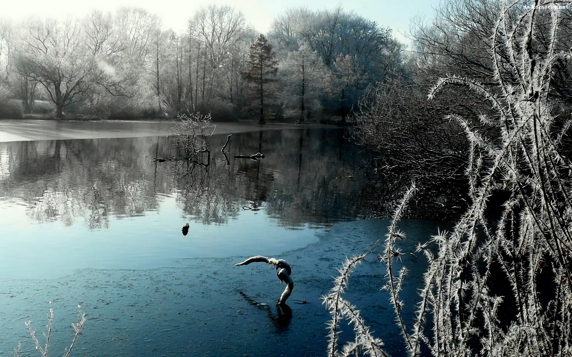 Park, Zima, Jezioro, Drzewa na Komórkę