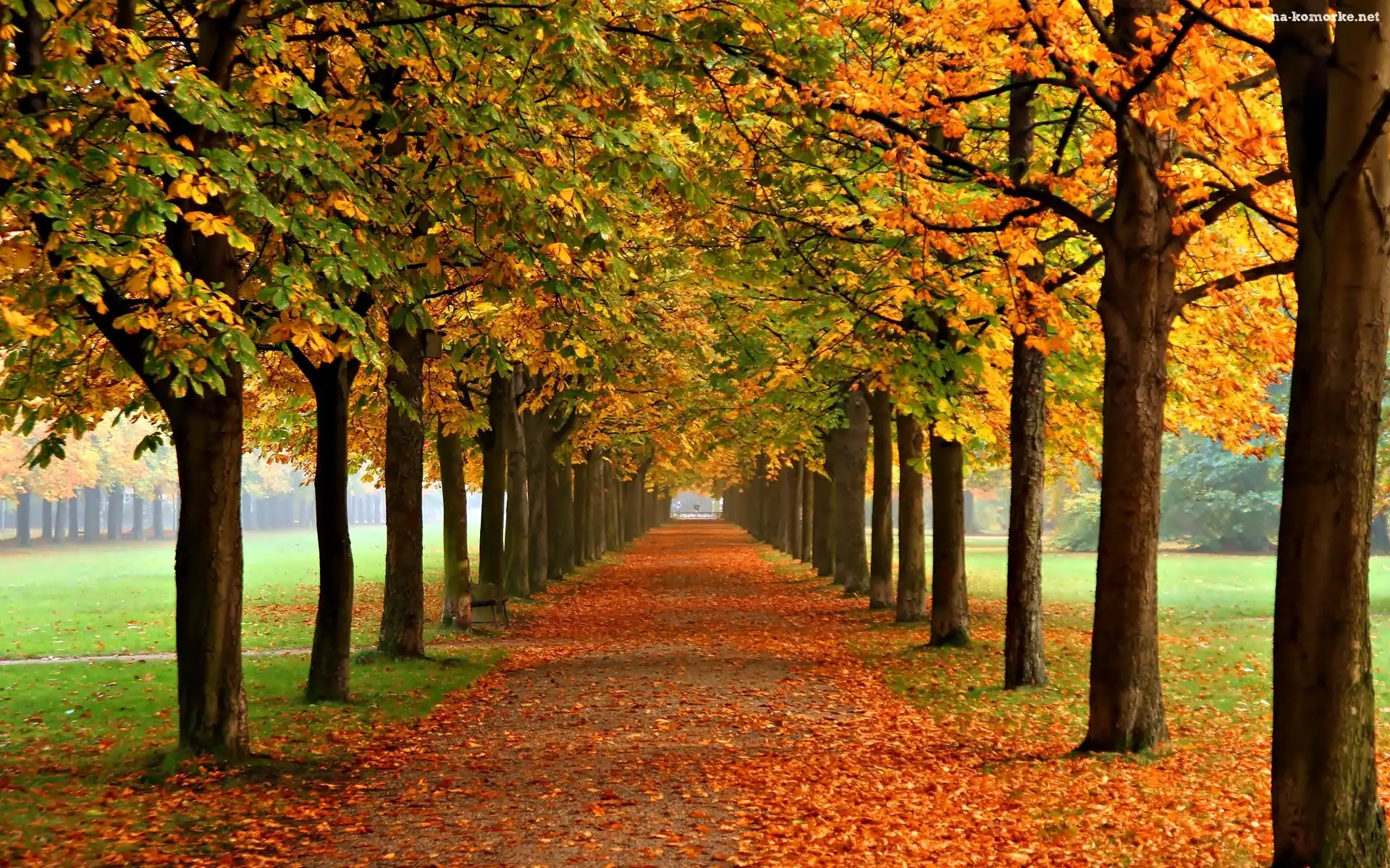 Park, Jesień, Drzewa, Kasztany, Liście na Komórkę